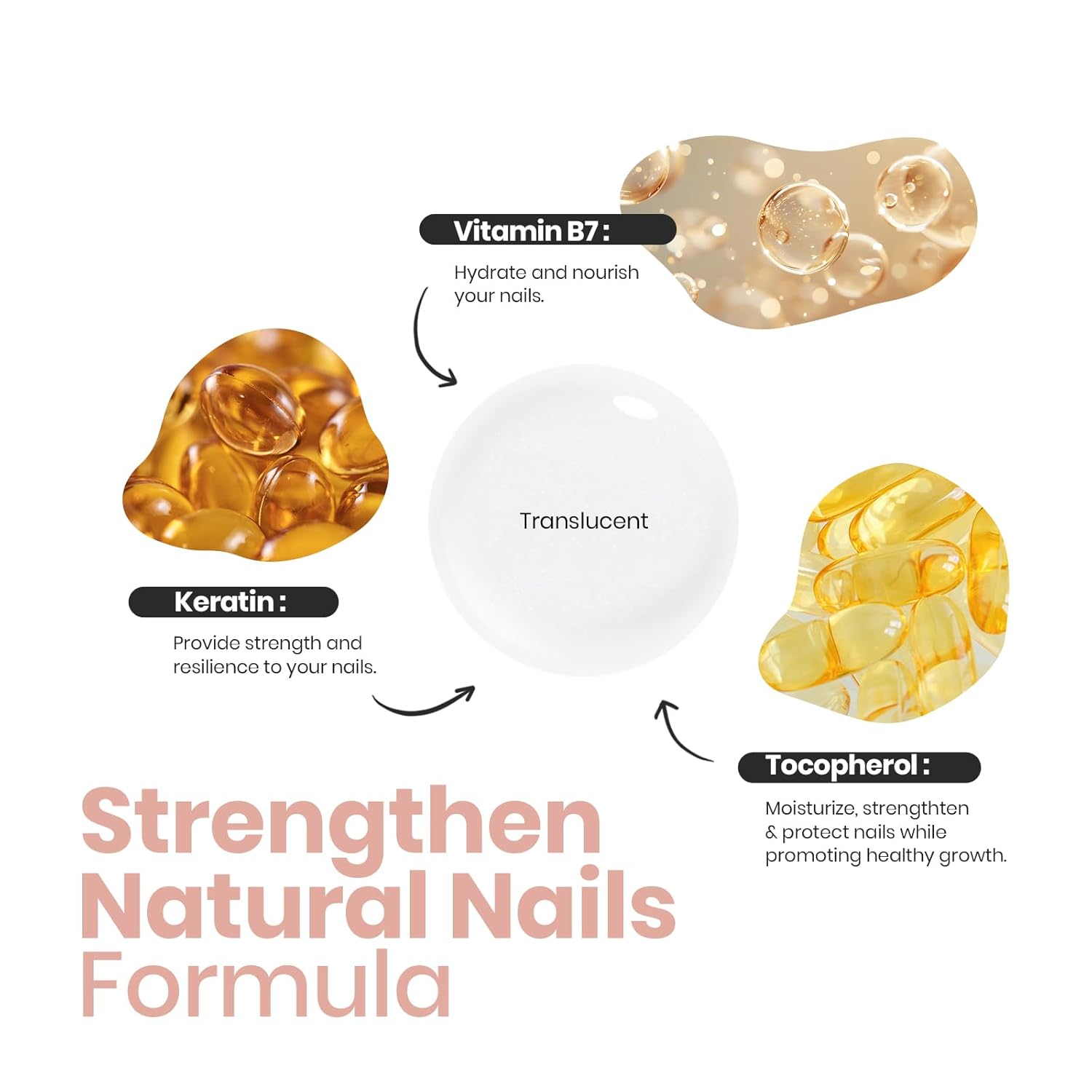 - Nourish Nail Health: Infused with at least three meticulously selected caring ingredients, it not only beautifies your nails but also strengthens and thickens them from within, accelerating their natural repair process, leaving your nails radiant with health from the core.