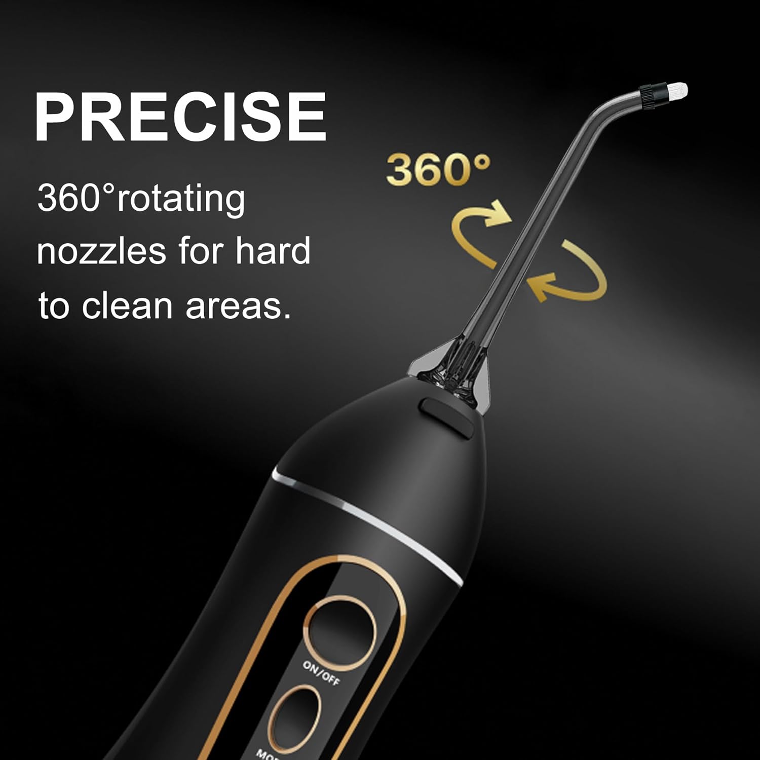 - 【How to Use】Press the nozzle replacement button on the top of the water flosser; Then carefully pull out the old nozzle and insert the new one into the nozzle slot.It is easy to install and replace.