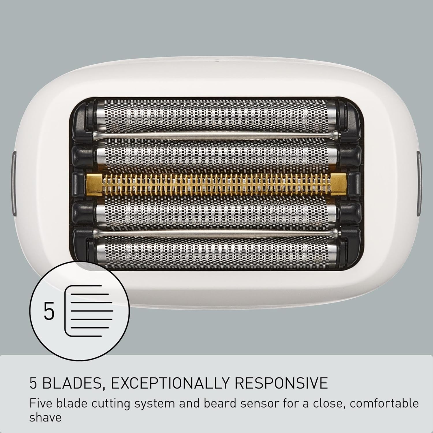 - Quiet Luxury That's Travel Ready: The unique, smooth shape makes this shaver exceptionally suited to pack for trips and offers exceptional control when shaving; powerful five-blade shaving system gently cuts every hair without irritation, so you can look great anywhere.