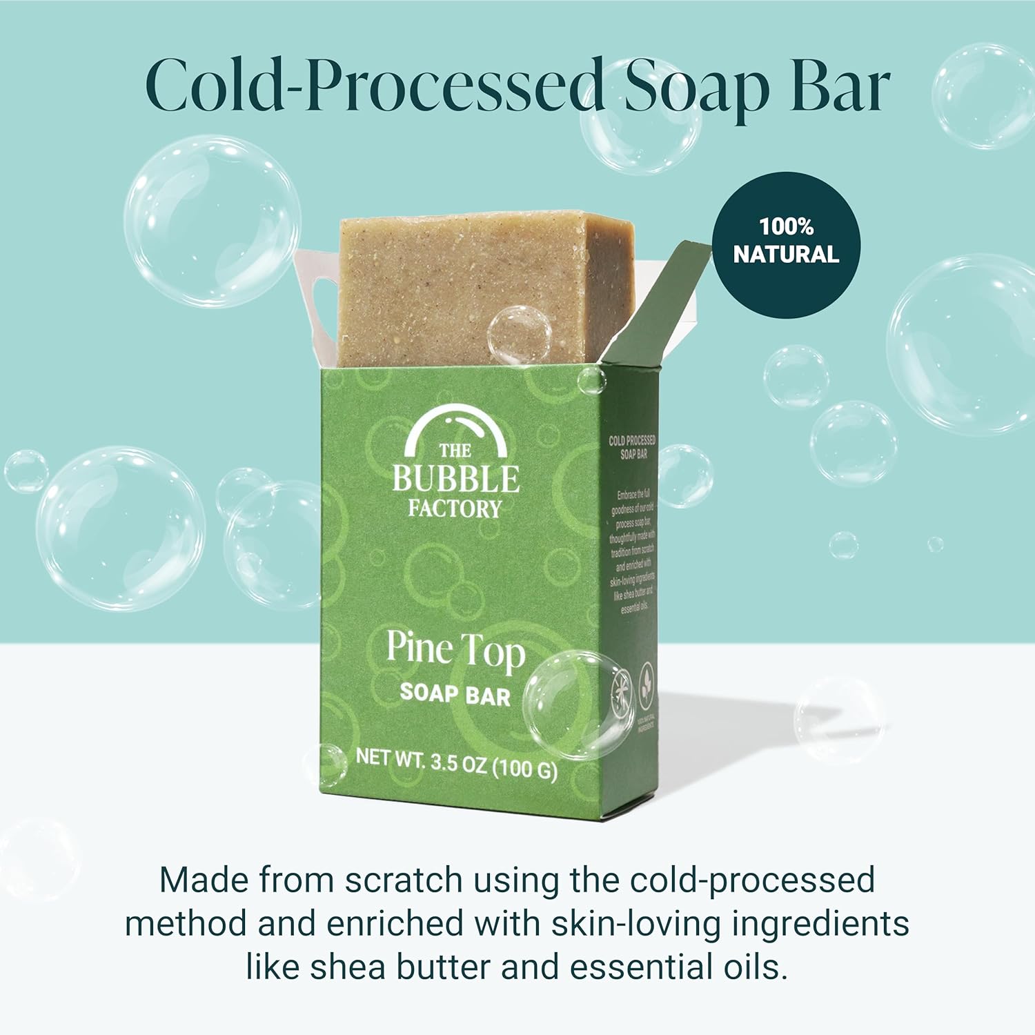 The Bubble Factory Handmade Soap, All Natural Soap for Women & Men, Hand, Bath & Body Natural Bar Soap, Vegan, Palm Oil Free, Made in USA with Shea Butter + Essential Oils, Pine Top, Single