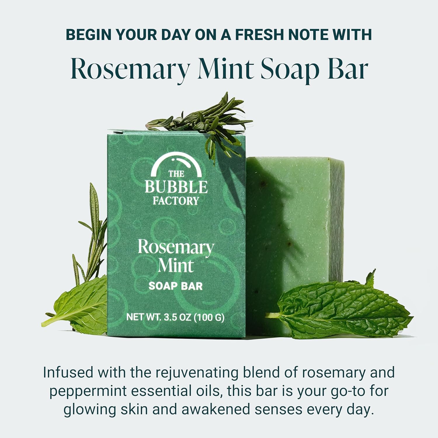 - ROSEMARY MINT SCENTED SOAP BAR: Begin your day on a fresh note with our uplifting Rosemary Mint soap bars. Infused with the rejuvenating essence of rosemary and peppermint essential oils, this bar is the perfect everyday essential to leave your skin glowing and your senses awakened