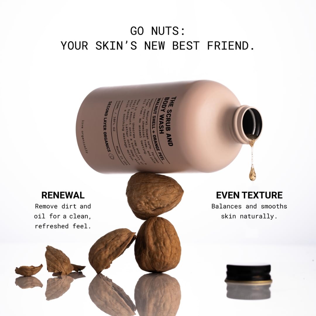 - Natural Exfoliation: Our body scrub features finely crushed walnut shells that gently buff away dead skin, leaving your skin smooth and refreshed. Made with natural ingredients, it offers effective exfoliation without irritation. A perfect addition to your skincare routine, itâs crafted in the USA and comes with a complimentary organic loofah for enhanced exfoliation.