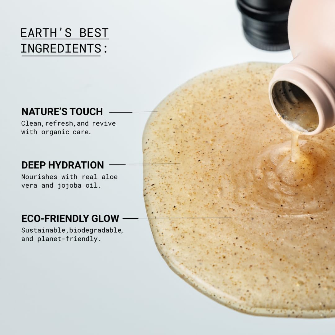 - All-Natural Ingredients: Formulated with pure, plant-based ingredients, our body scrub gently exfoliates while nourishing your skin. Suitable for daily use and all skin types, itâs free from harmful chemicals and dyes. Crafted in the USA and packaged in recyclable materials, it's a simple yet effective choice for eco-conscious skincare.
