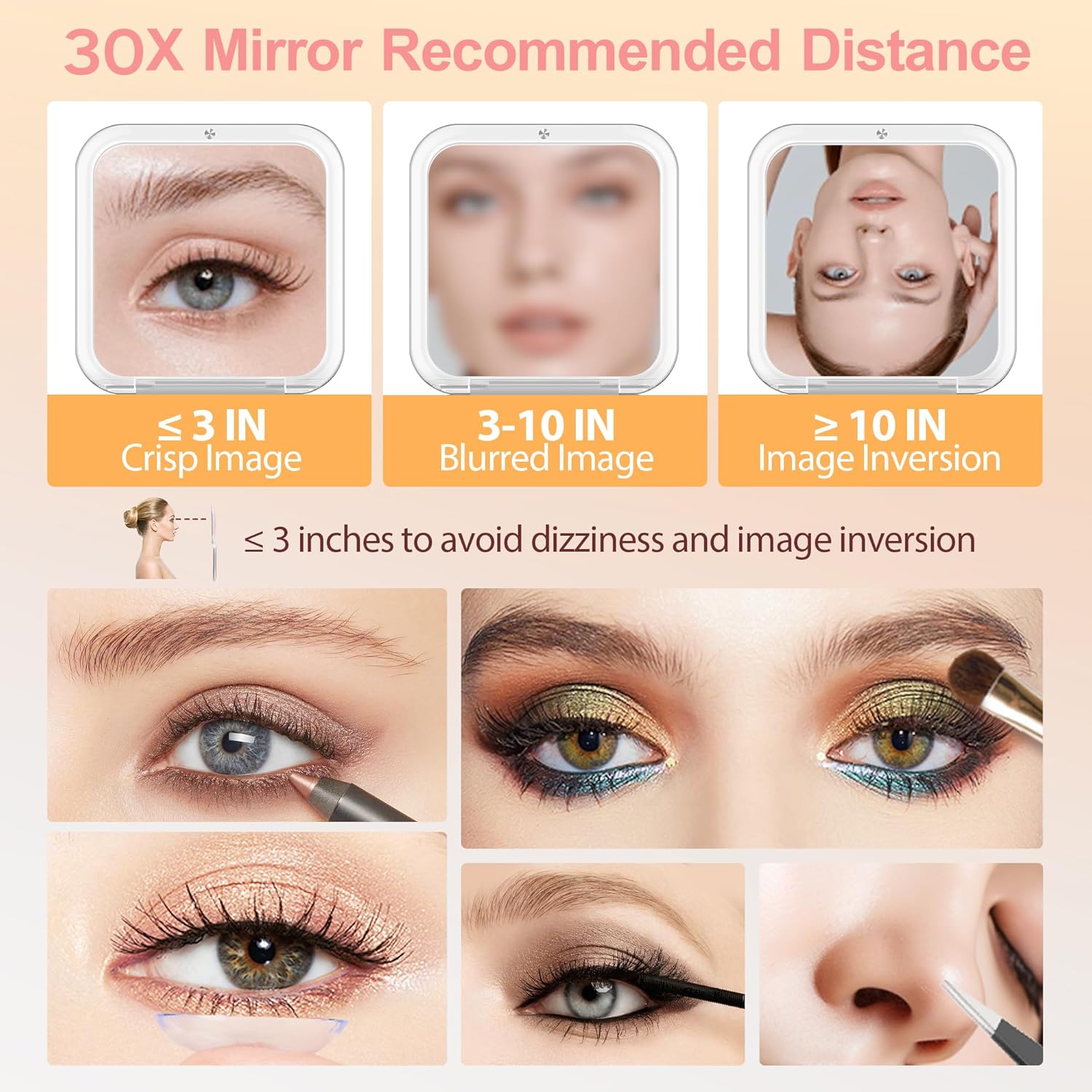 MIYADIVA Compact Mirror, 30X Magnifying Mirror, Pocket Mirror for Purse, Travel Makeup Mirror with 30X/1X Magnification, Travel Essentials Mirrors, Precision Tweezers, Present for Girls