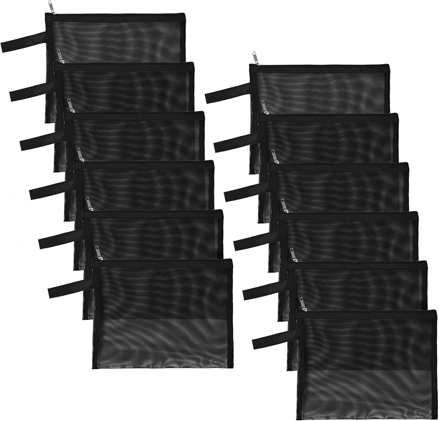12 Psc Mesh Zipper Pouch Bags,Small Comestic Makeup Bage For Travel, Purse Organizer Pouches (Black, A5*12)