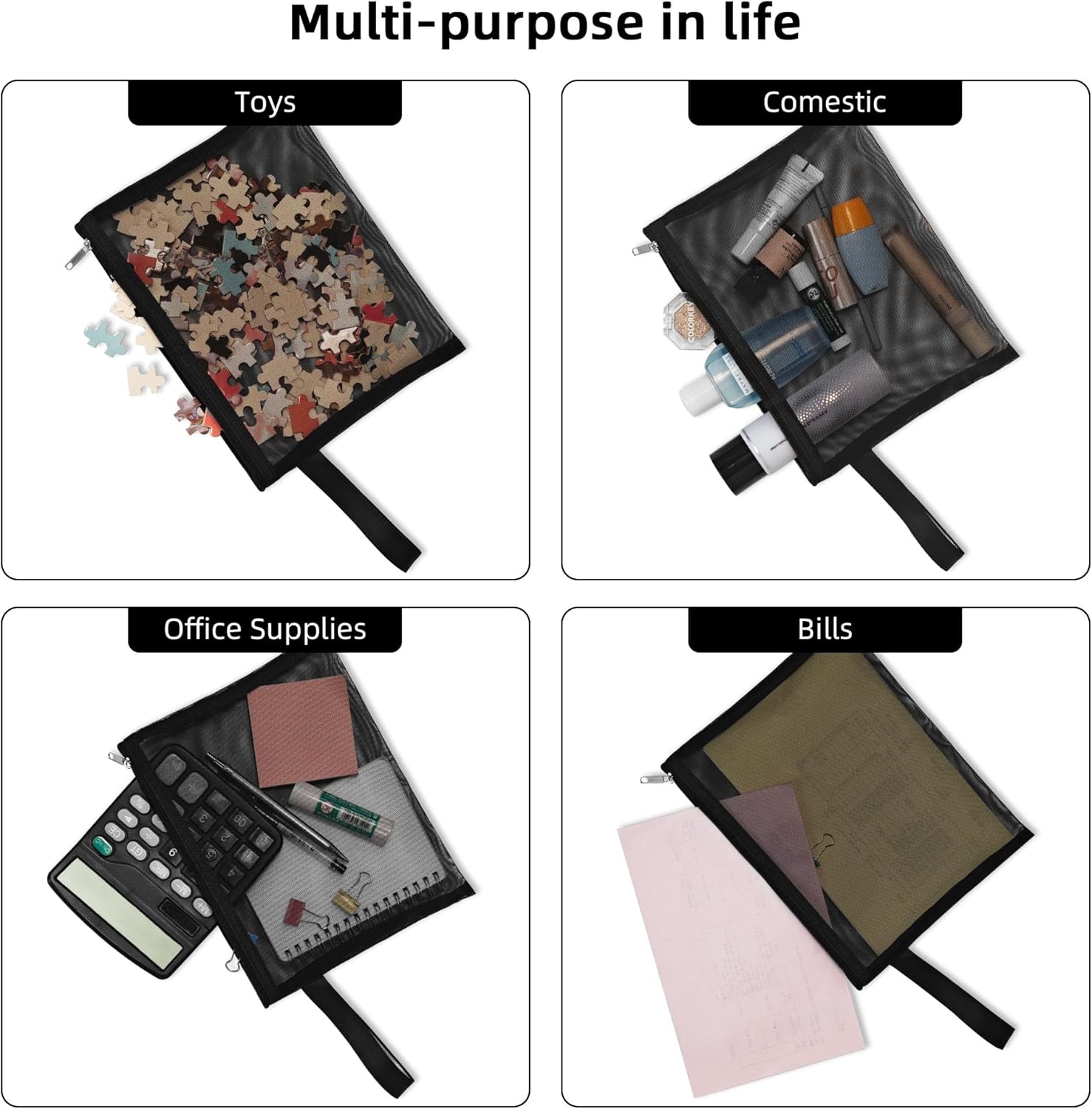 - See throught mesh pouches: this mesh bag is designed to be transparent, you can see items what's inside directly, save you time to find things, also with a zipper, which can prevent items from falling out