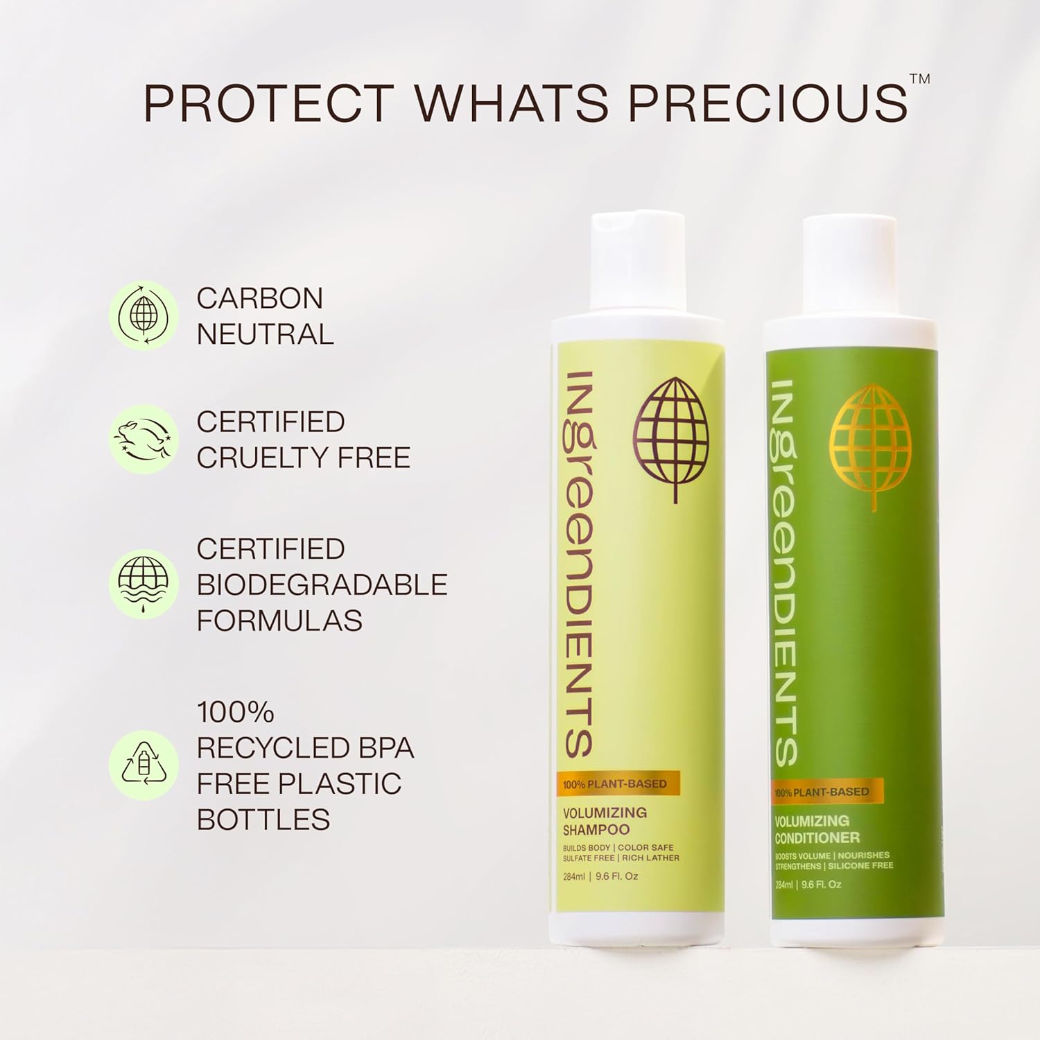 Ingreendients Non Toxic Vegan Volumizing Conditioner with Organic Ingredients For Fine Hair - Strengthening Barley Protein and Argan Oil, Color Safe, Paraben & Gluten Free, Silicone & Sulfate Free