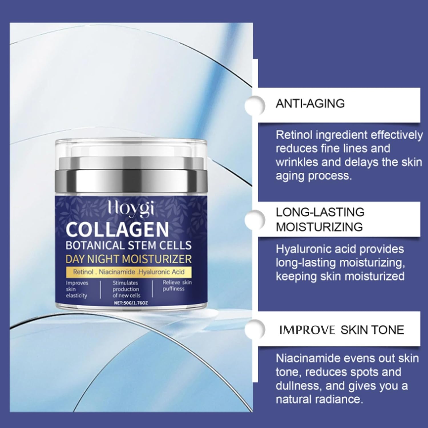 Collagen Face Moisturizer with Airless Pump - Collagen Botanical Stem Cells Cream for Skin with Retinol, Niacinamide, Hyaluronic Acid - Anti-Aging Day & Night Cream, 1.8 OZ