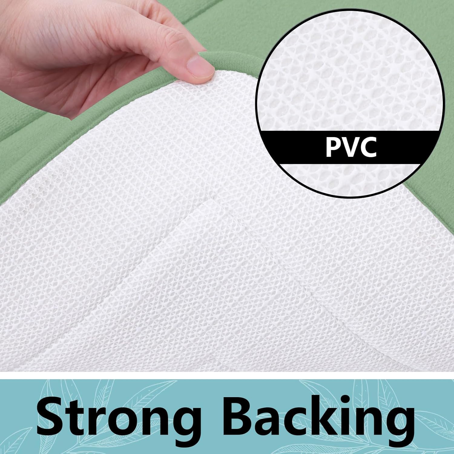 - PVC Backing : Our bath mat features a non-slip backing made from good quality mesh PVC that helps ensure you and your family stay secure. WARNING: Place mat on CLEAN DRY SMOOTH FLOOR only. Water under bath mats can cause it to slip. Keep bottom of mat dry. Before using bath carpet, test with foot to ensure it doesn't move