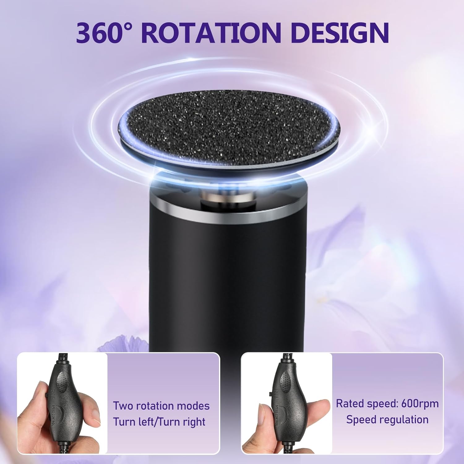 - 【ADJUSTABLE SPEED】:The electric callus remover has adjustable speeds (0-500 rpm), you can adjust the right speed to remove callus on your feet. The foot grinder can also change the direction forwards and backwards, it can rotate 360 degrees.bringing you a portable and free using callus removal experience