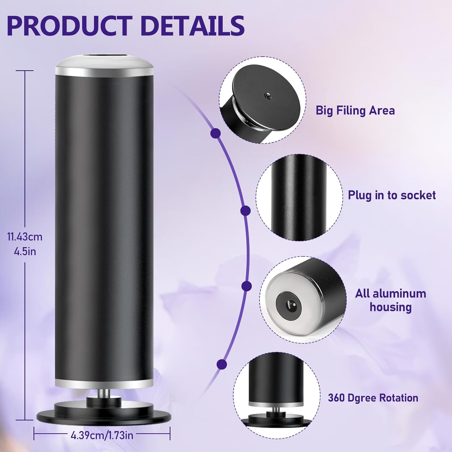 - 【ALUMINUM ALLOY MATERIAL】:Electronic foot file grinder is ergonomic handle design, comfortable to hold and use. Electric foot file callus remover body adopt aluminum alloy material, efficient heat dissipation, do not worry about overheating