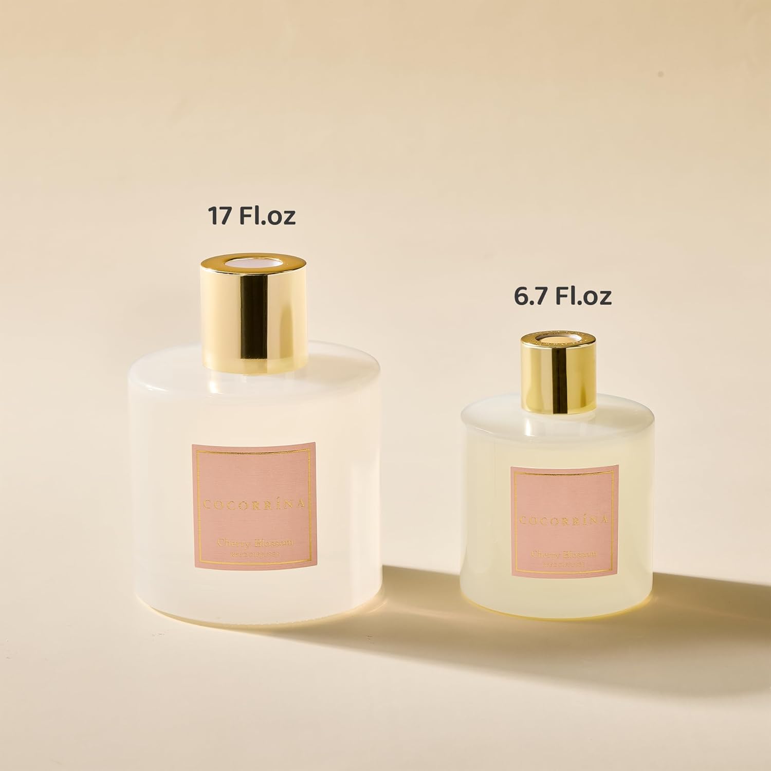 COCORRÍNA Reed Diffuser - Cherry Blossom 17 Fl.oz Reed Diffuser with 8 Sticks Scented Diffuser with Preserved Flowers for Bathroom Home Decor