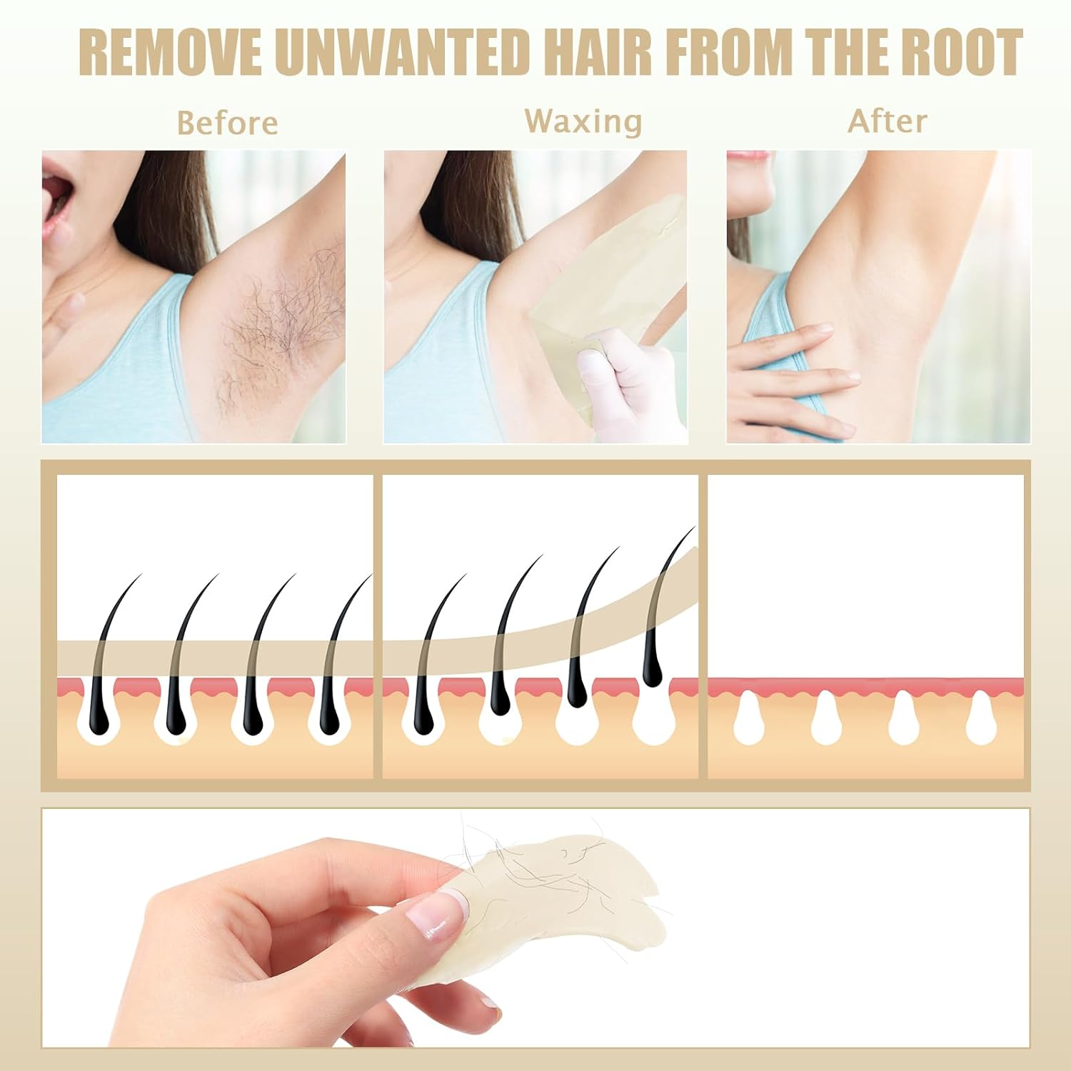 • 【Save Time & Money, Long-Lasting Results】Our brazilian wax kits are suitable for women and men for full body hair removal, including but not limited to the face, eyebrows, lips, arms, underarms, chest, bikini, and legs. Waxing hair removal extracts the hair from the root, thus slowing down the growth. Enjoy 3-6 weeks of smooth, hairless skin for a fraction of the cost.