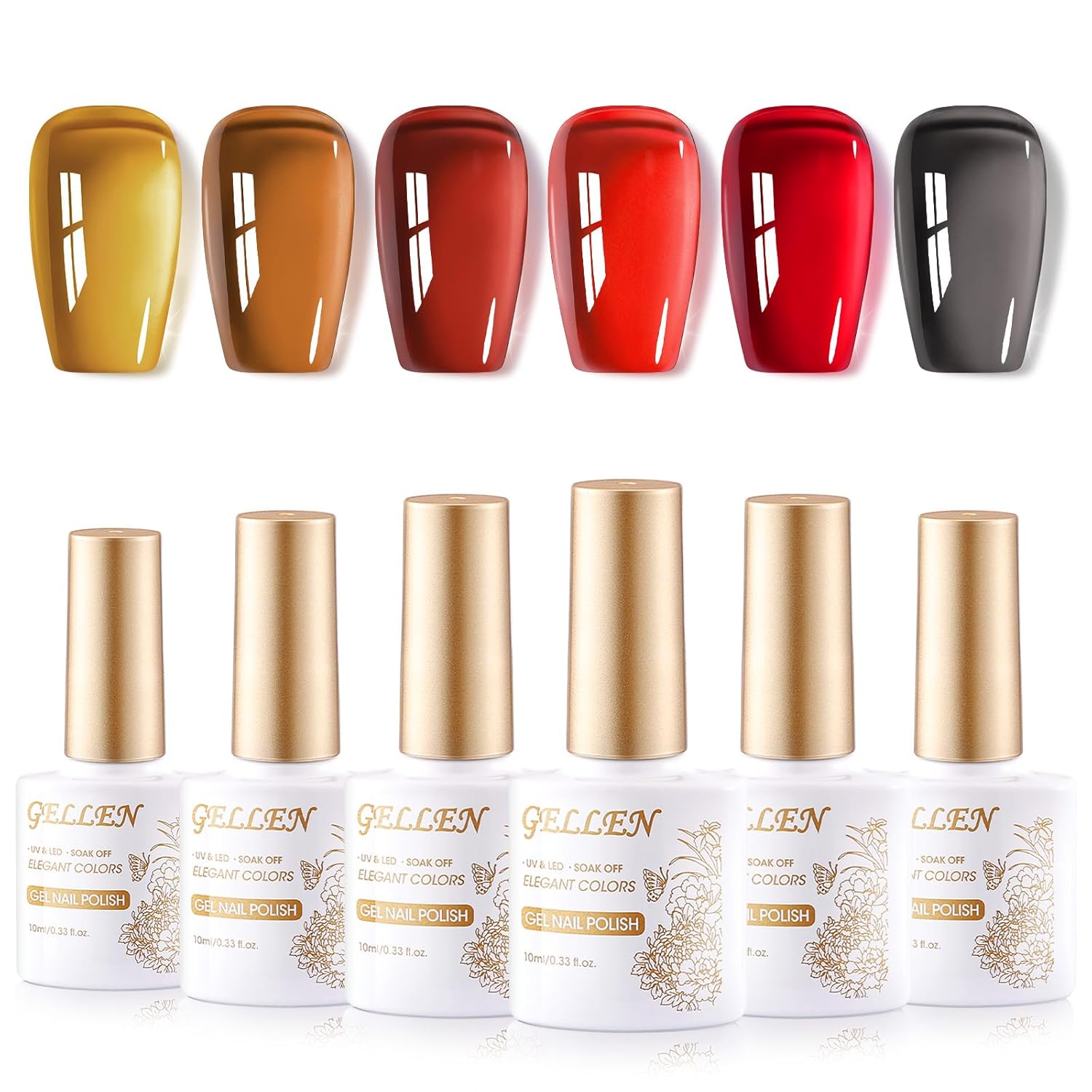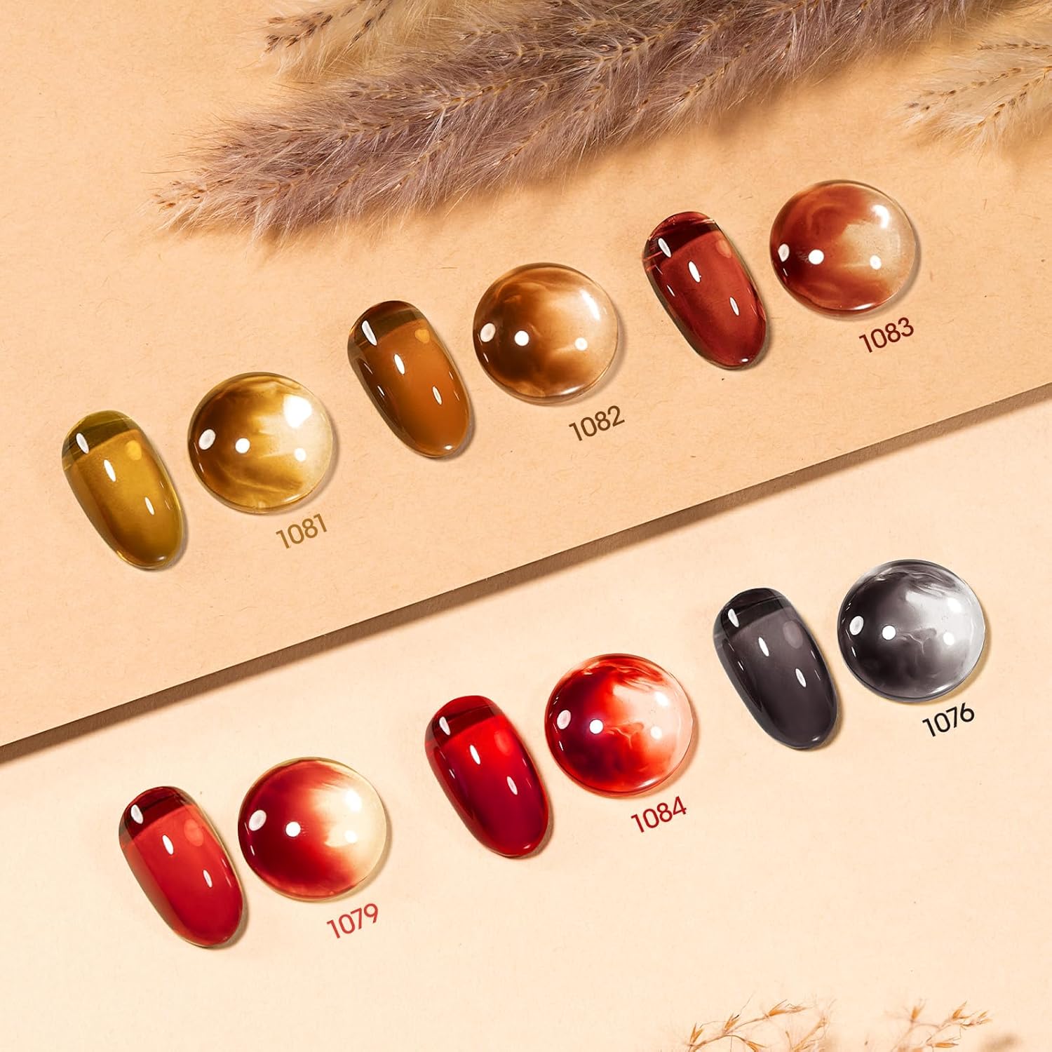 - What You Get: This gel nail polish set contains 6 translucent sheer colors - popular and trendy shades of red, brown, and black for fall and winter