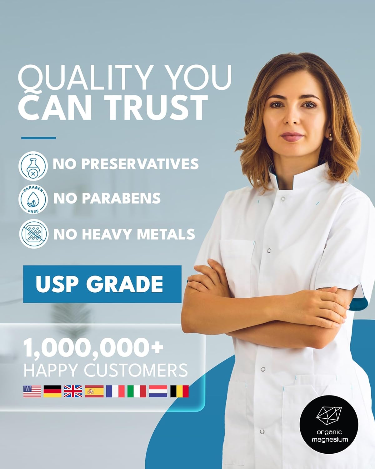 - 1,000,000+ Customers Worldwide: Trusted by women and men alike, this topical magnesium oil is praised for purity, performance, and simplicity. A truly pure magnesium oil spray — no crap, just clean ingredients that work. Backed by a 100% guarantee.