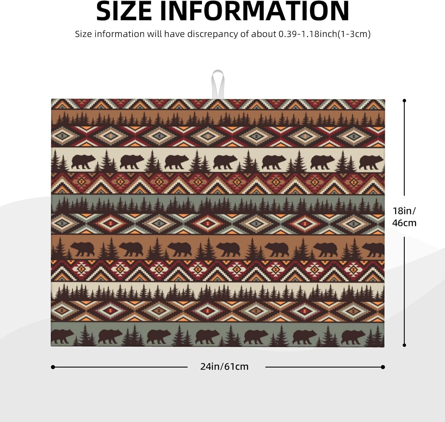 Bear Mountain Microfiber Dish Drying Mat for Kitchen Counter Vintage Rustic Dishes Pad Dish Drainer Rack Mats 18"x24" Absorbent Washable Reusable