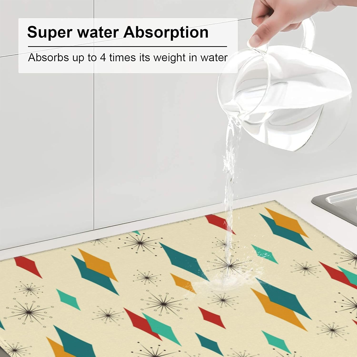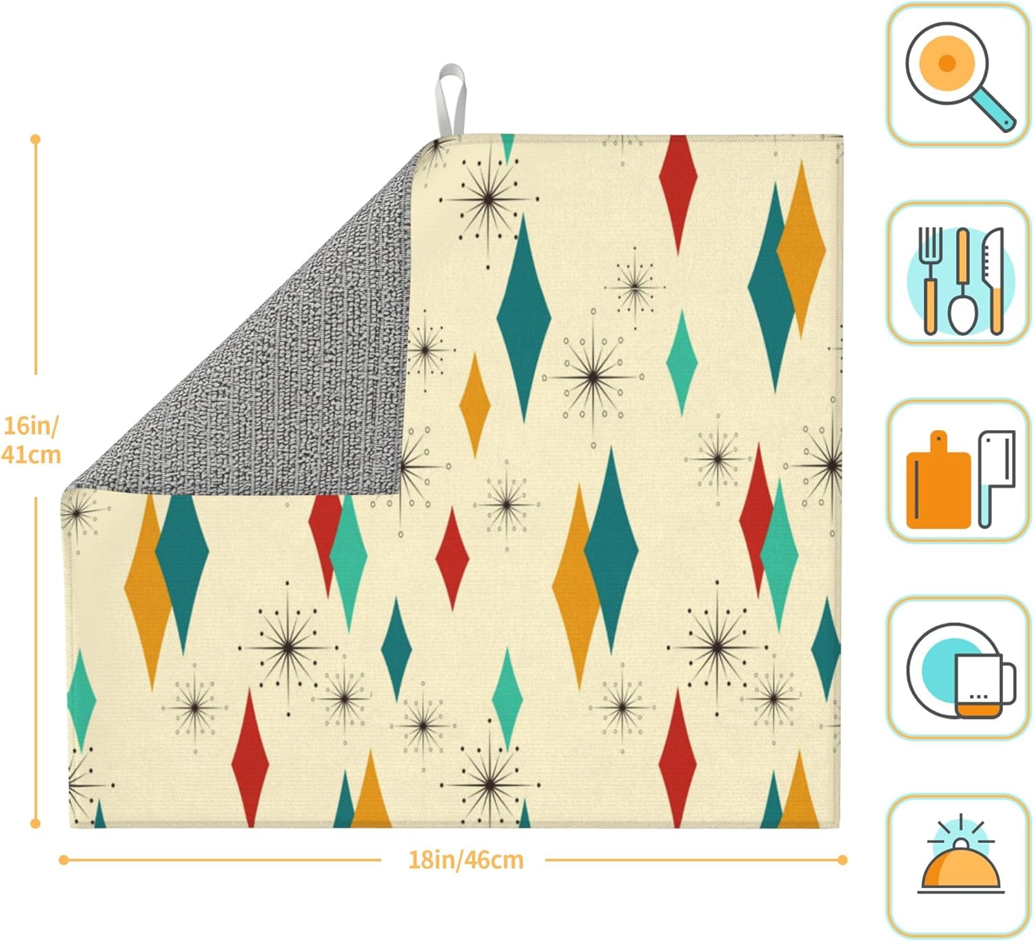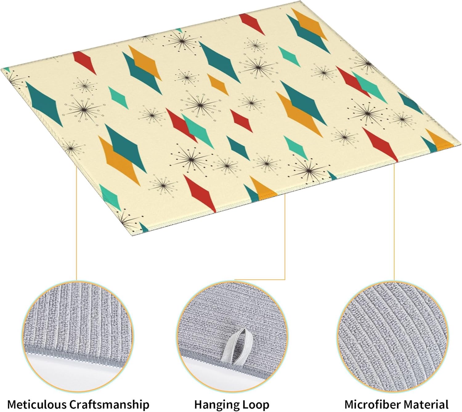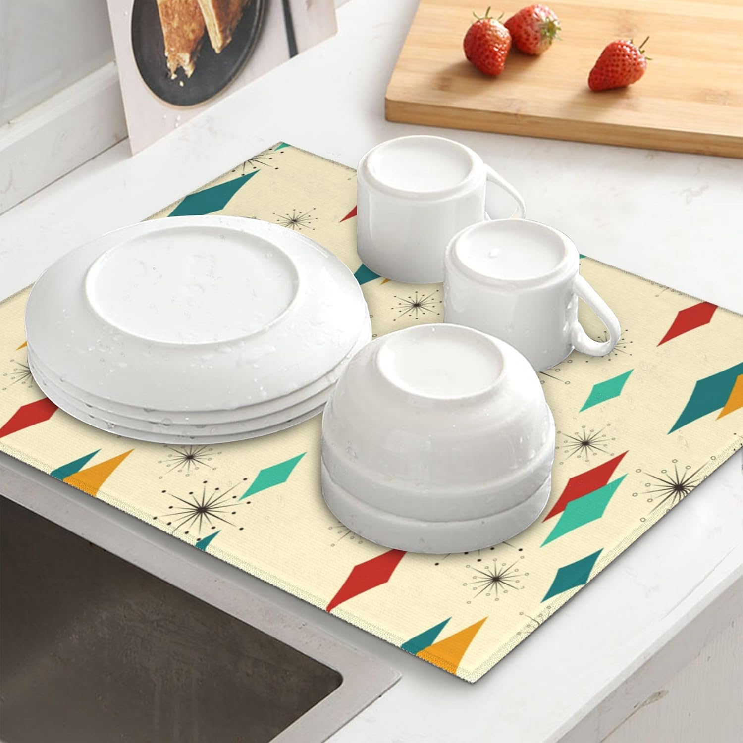 Mid Century Modern Dish Drying Mat for Kitchen Counter Atomic Retro Dish Drainer Rack Mats 16"x18" Absorbent Reversible Yellow Drying Pad