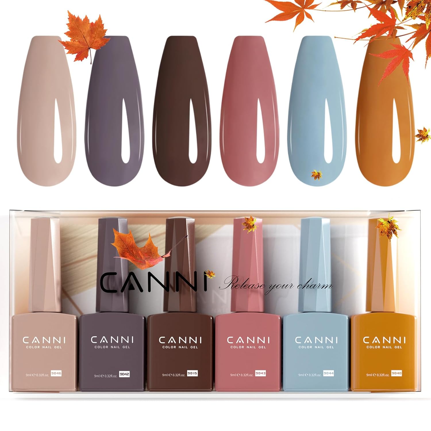 CANNI 6 Colors 9 ML Hema-Free Brown Gel Nail Polish Set, Dark Chocolate Brown Gel Polish Kit Fall Light Colors, Soak Off LED Nail Gel Manicure Kit DIY at Home Salon Gifts