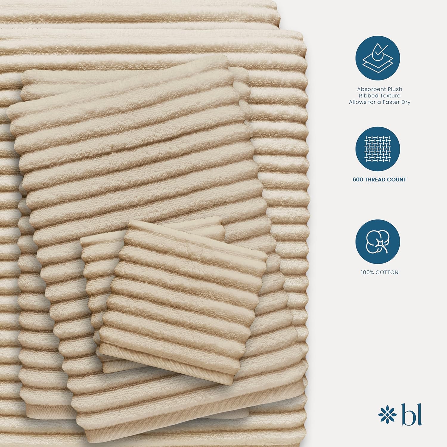 Blue Loom Ribbed Bath Towels Set, 100% Cotton 600 GSM, Soft Absorbent Durable Quick Drying 2 Bath Towels for Bathroom - Mason Set of 2 Ivory Beige (58" x 30" Inch)