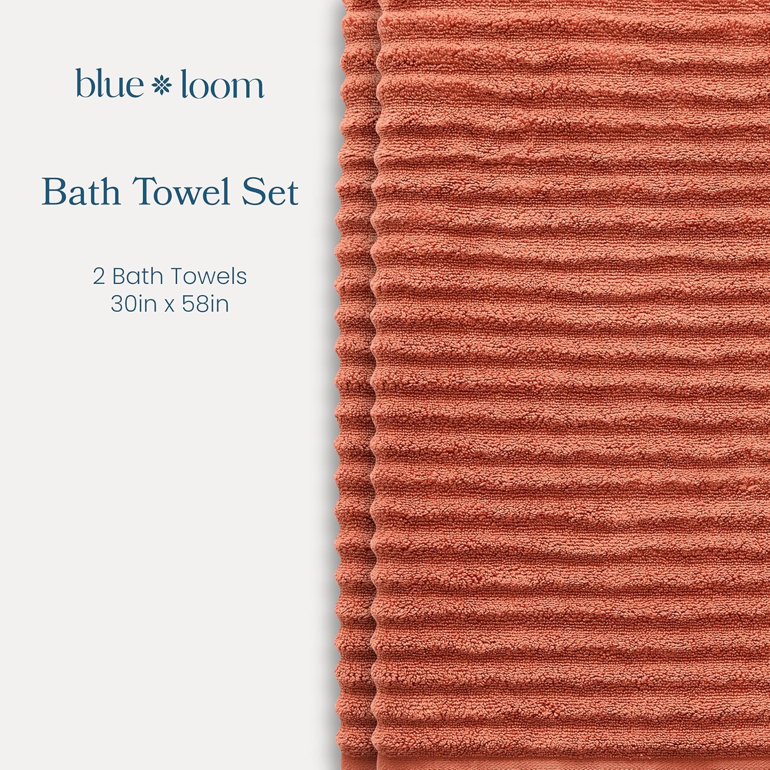 Blue Loom Ribbed Bath Towels Set, 100% Cotton 600 GSM, Soft Absorbent Durable Quick Drying 2 Bath Towels for Bathroom - Mason Set of 2 Terracotta Red (58" x 30" Inch)