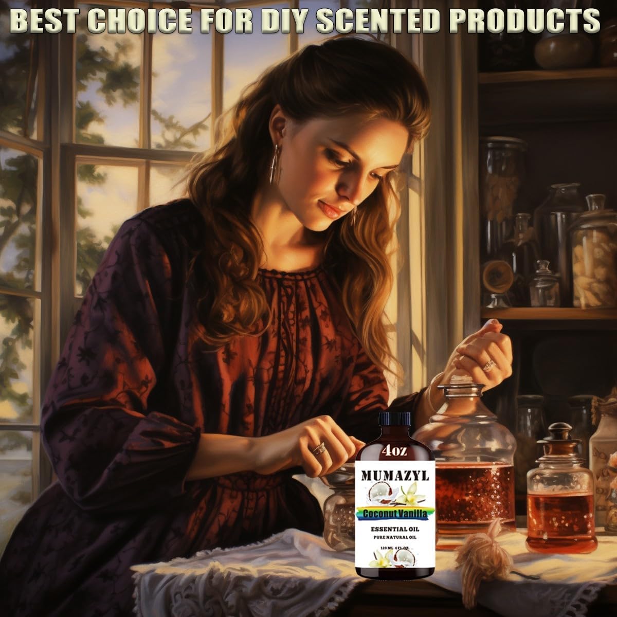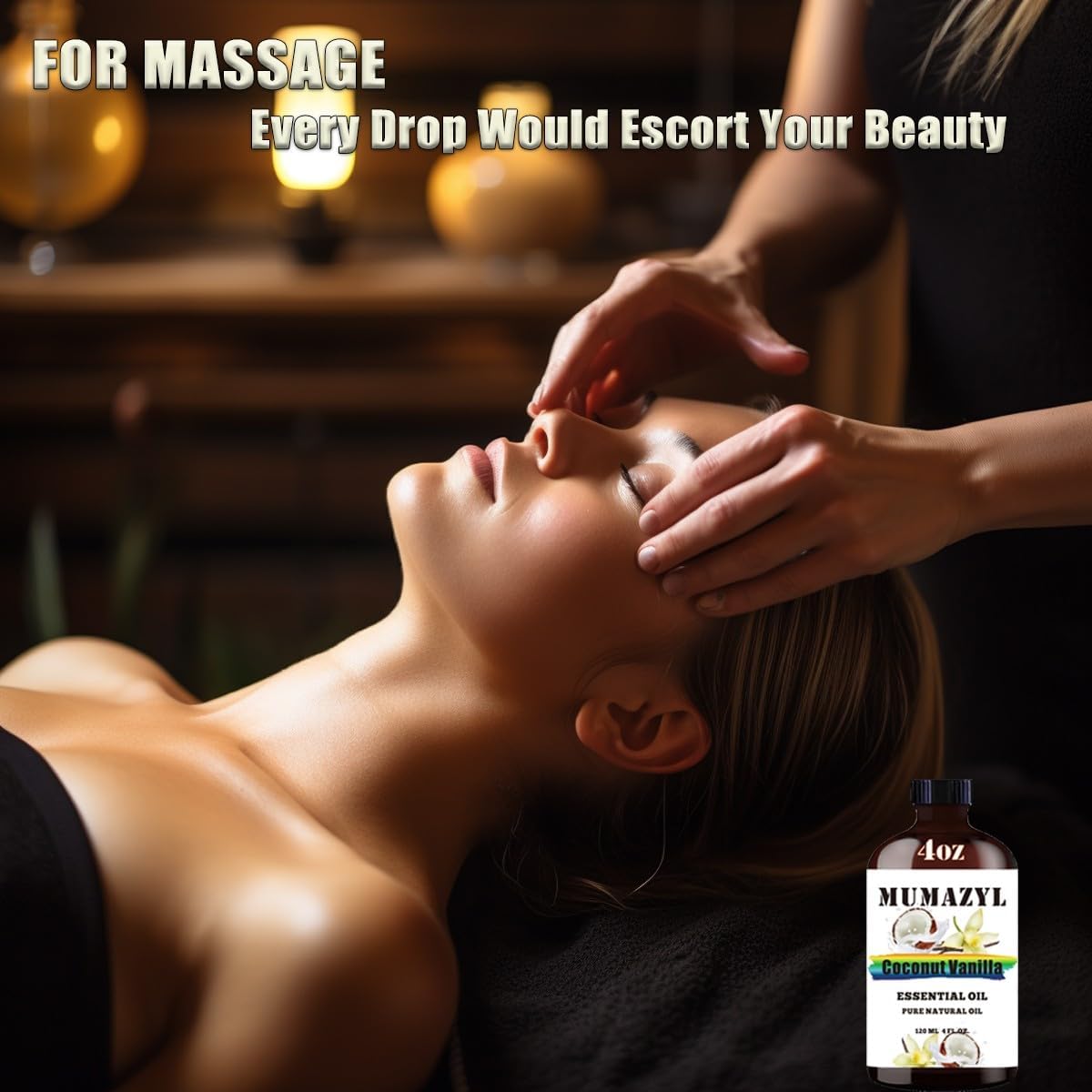 Coconut Vanilla Essential Oil, Coconut Vanilla Oil 4 Fl Oz 120ML for Diffuser Humidifier Yoga Cleaning DIY Candle Soap Making Essential Oils