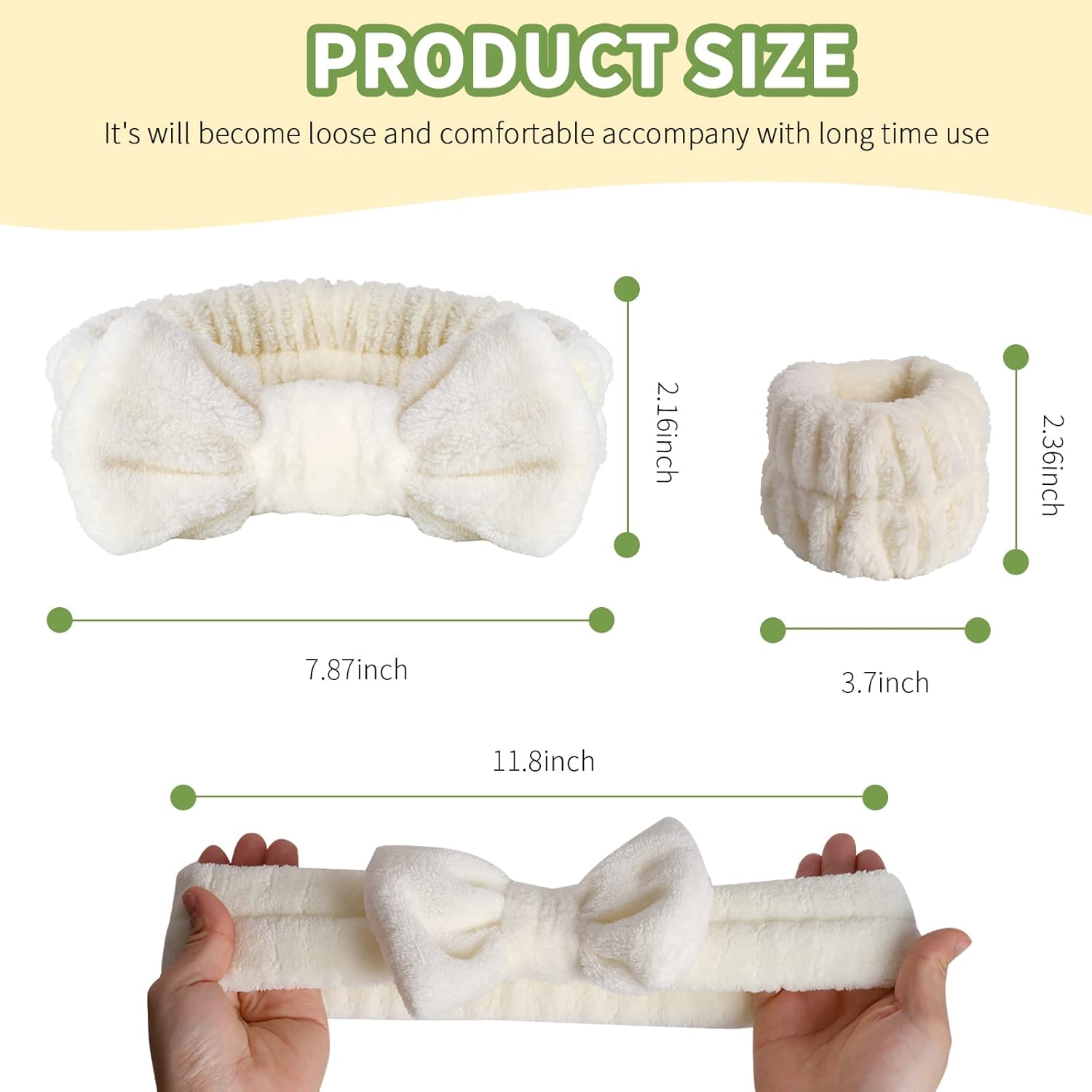 - [Spa Headband and Wristband set for Washing Face] This set contains 6 pieces -2pcs cute bow tie spa headband and 4pcs face wash wristband, have elegant color-beige and gray. Facial headband keep your hair out of face and keep dry, these wrist scrunchies keep the water from dripping down my arms and avoid wet sleeves and clothes.