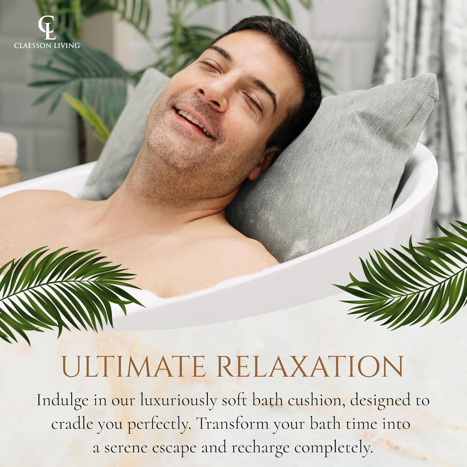 Luxury Bath Pillow for Tub - Thick and Comfortable Bathtub Pillow Support for Head and Neck and Back - Washable Quick-Drying Bath Pillows - Bath Cushion for Home Spa - Fits Any Bathtub - Light Gray