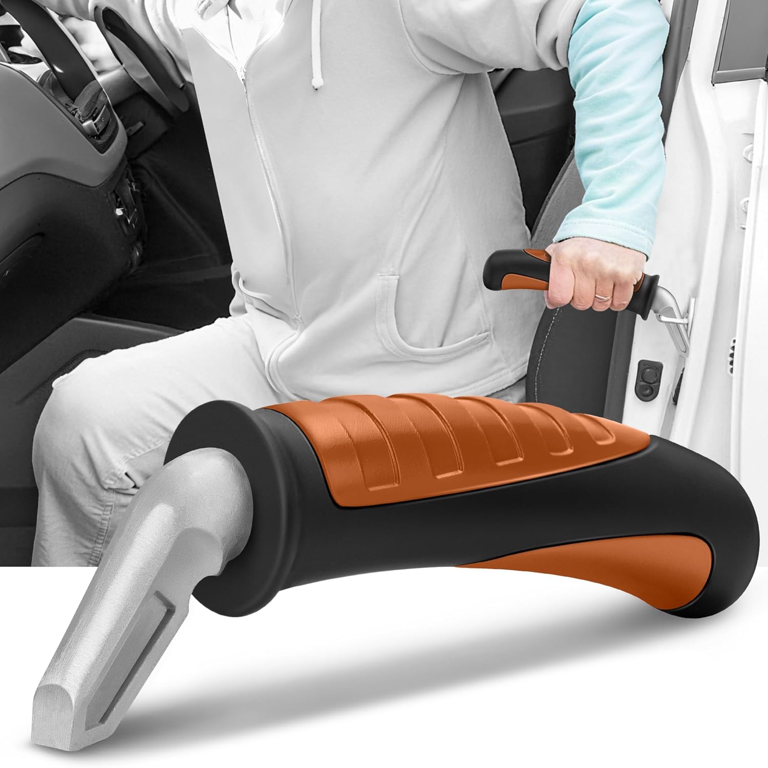 - ăComfort Grip DesignăThe vehicle support handle features a lightweight, cushioned PVC material for a soft, ergonomic grip. Car grab handle contoured shape fits naturally in your hand, reducing the risk of slips and making getting in and out of the car safer and more comfortable.