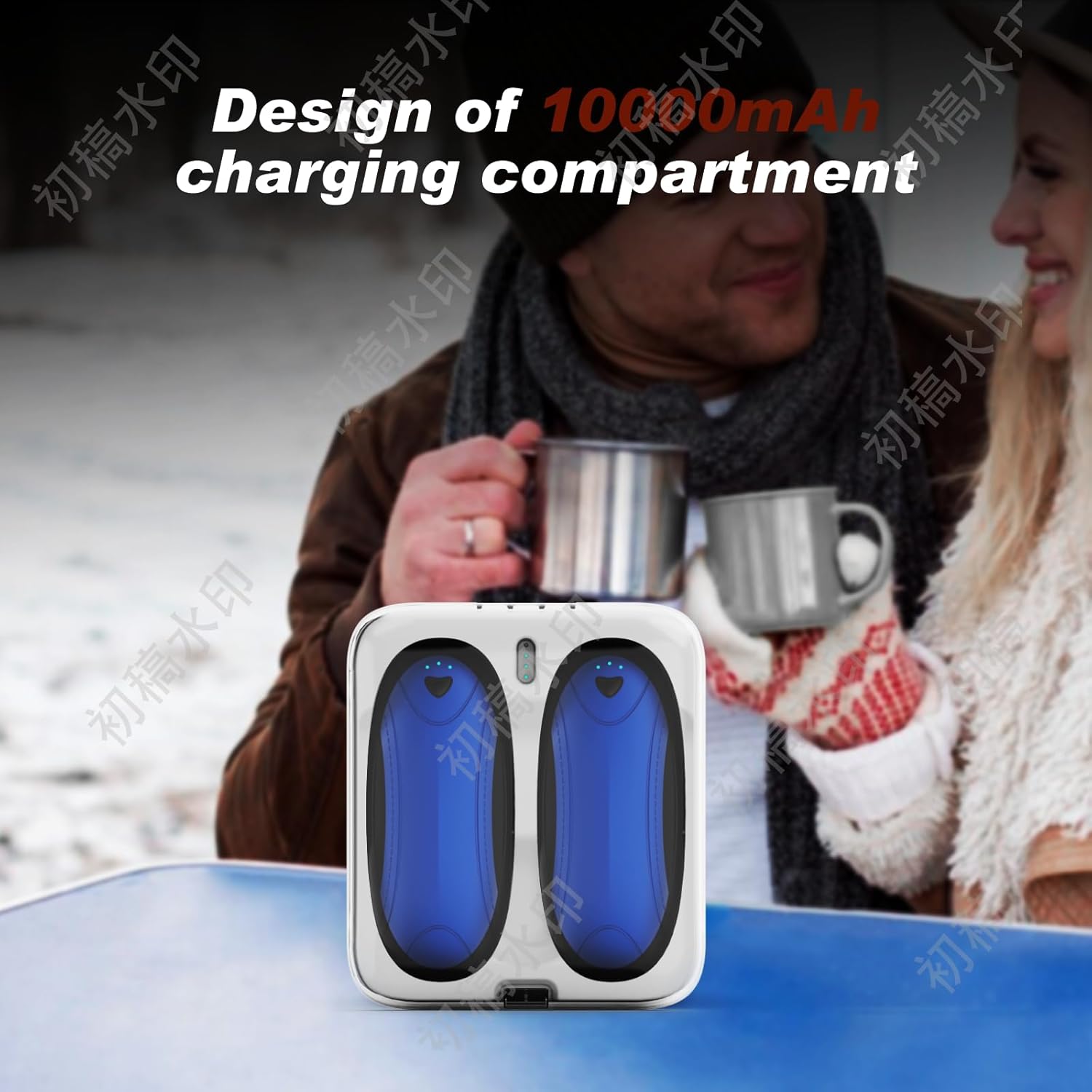 - 【Longer Lasting Warmth】 - With a large 4000mAh battery capacity and 10000mAh Charging Box, the electric hand warmer rechargeable provides you with up to 24-60 hours of warmth during the chilly winter. It effortlessly caters to your entire day's needs.