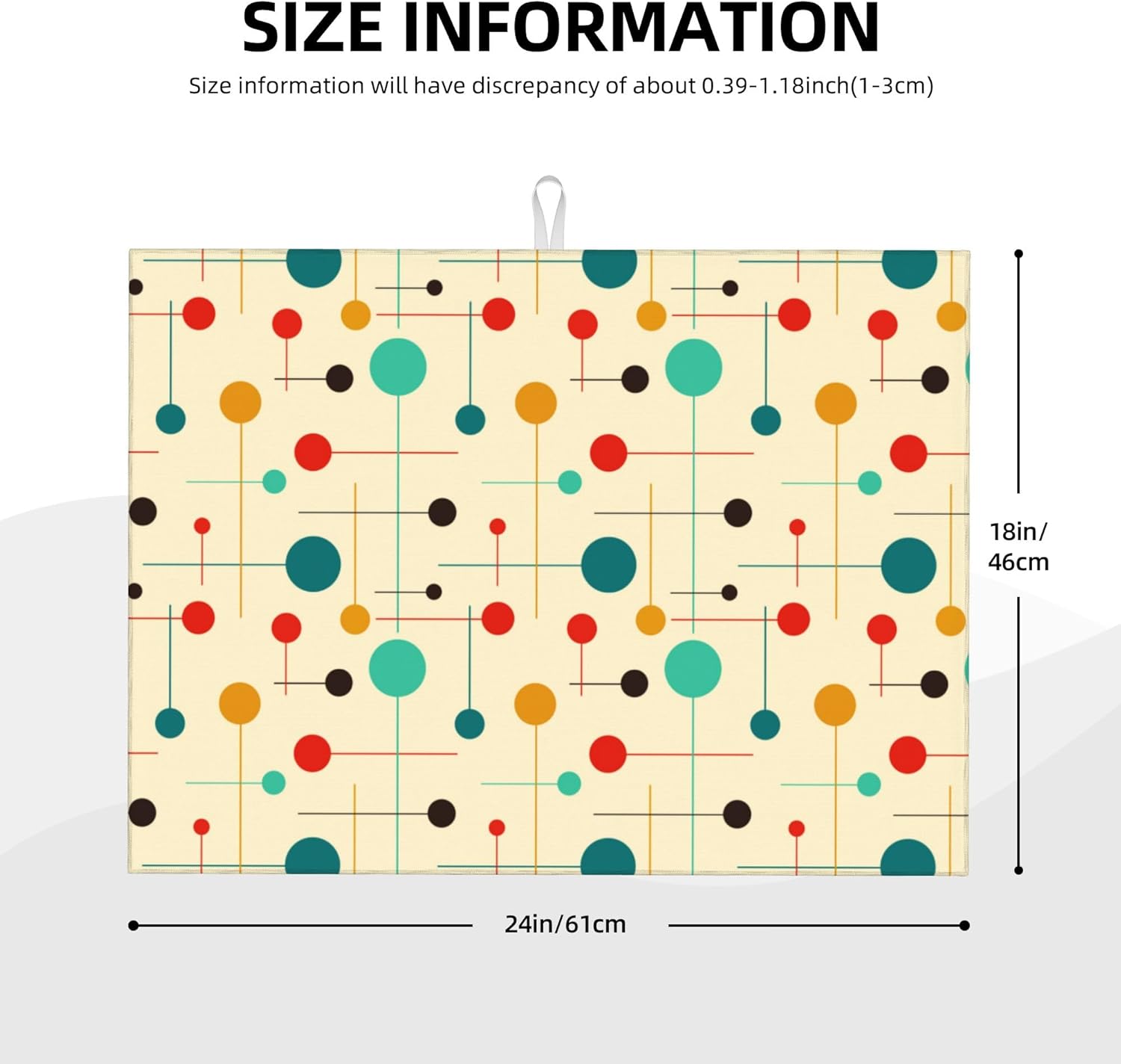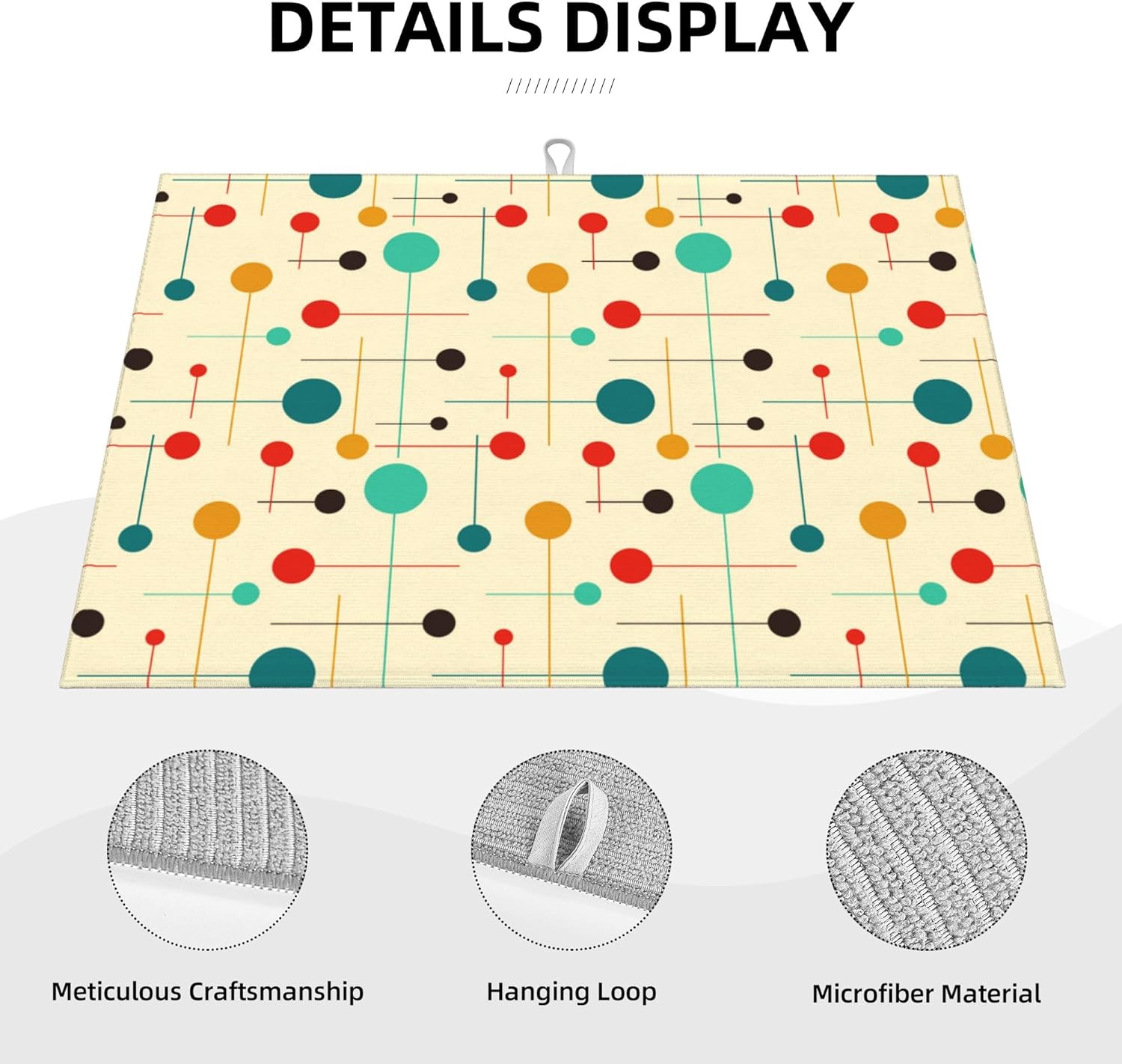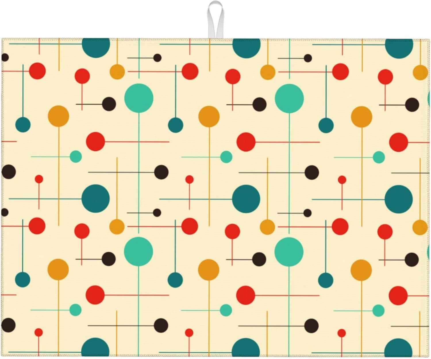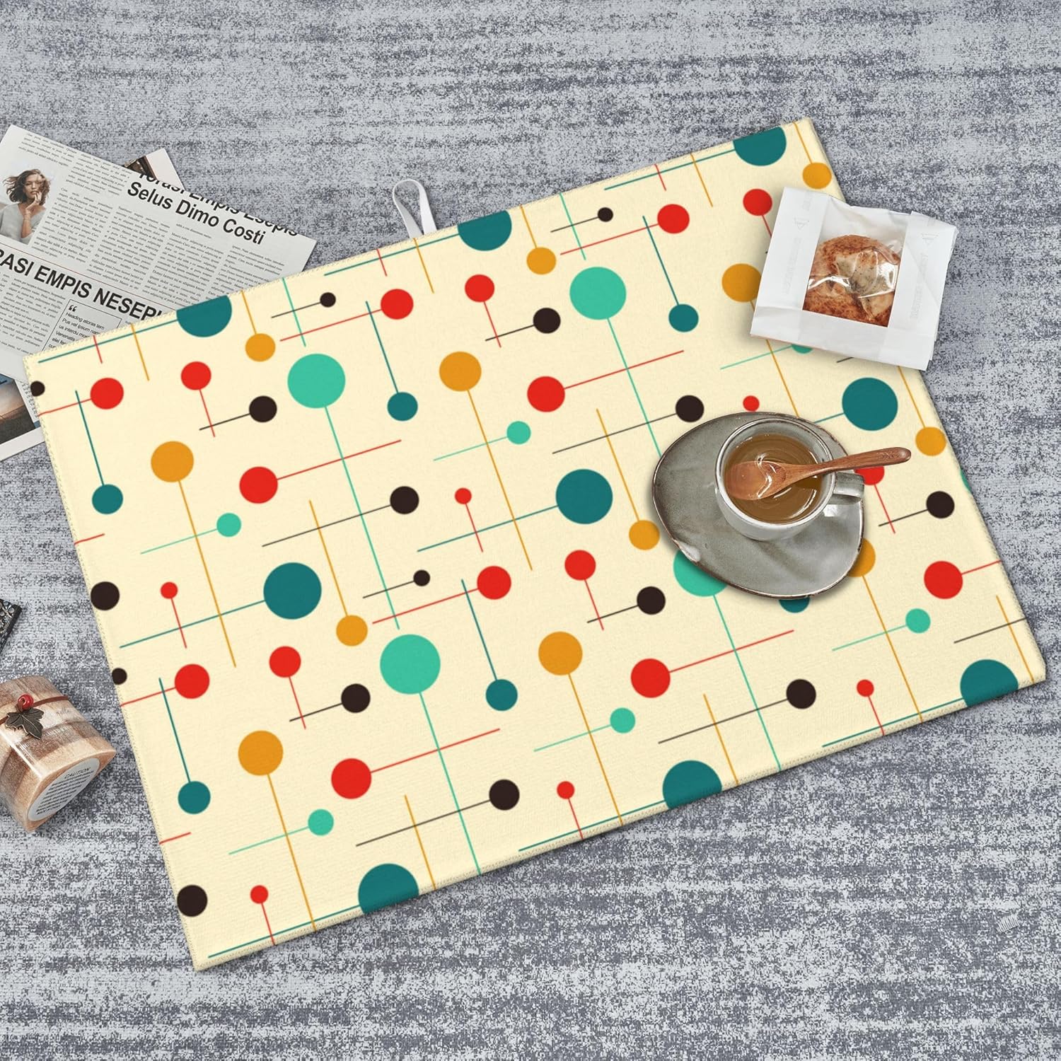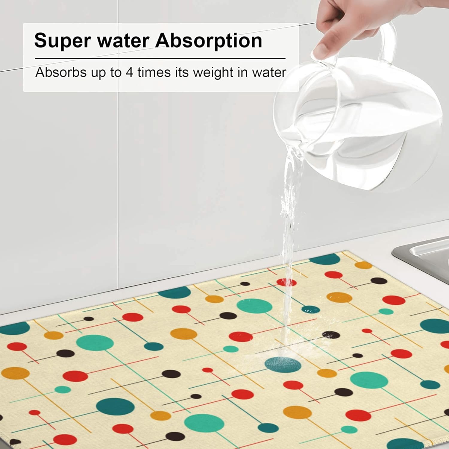 Mid Century Modern Atomic Retro Dish Drying Mat for Kitchen Counter Yellow Drying Pad 18x24 Inch Absorbent Reversible Dish Drainer Rack Mats