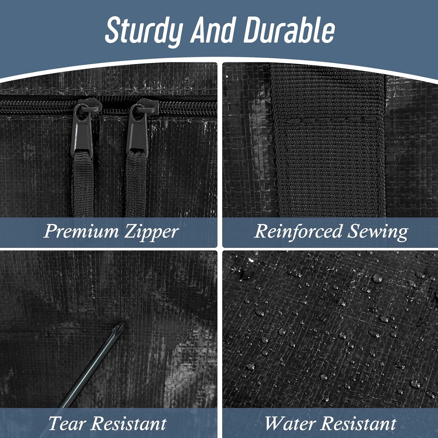 12 Pack Extra Heavy Duty Large Moving Bags with Strong Zipper & Comfortable Handles, Sturdy & Durable Clothes Storage Bags Totes Bins, Packing Moving Boxes for College Supplies, Black