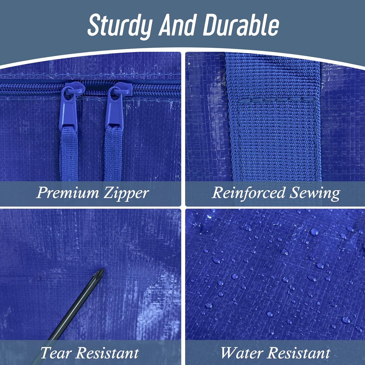 6 Pack Extra Heavy Duty Large Moving Bags with Strong Zipper & Comfortable Handles, Sturdy & Durable Clothes Storage Bags Totes Bins, Packing Moving Boxes for College Supplies, Blue