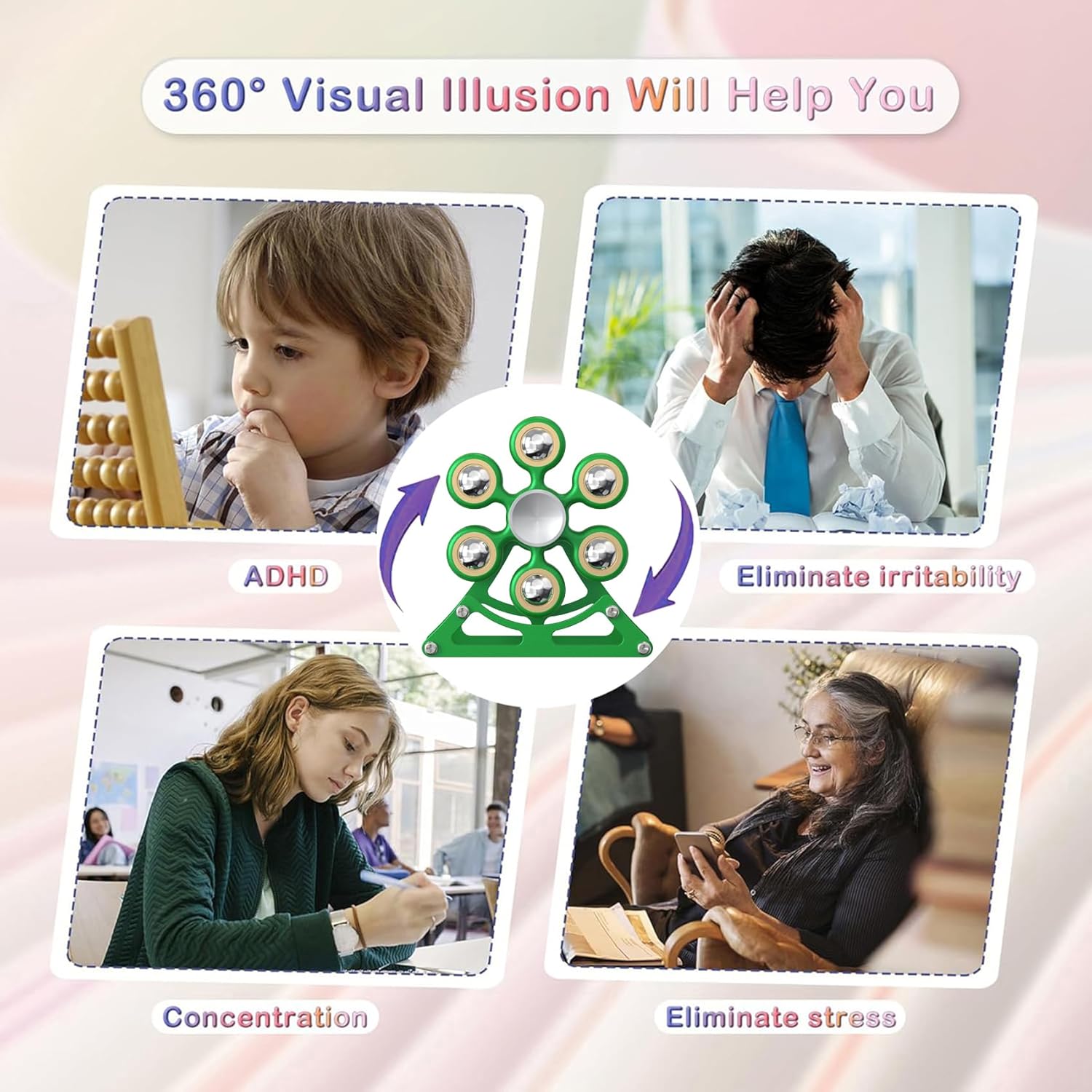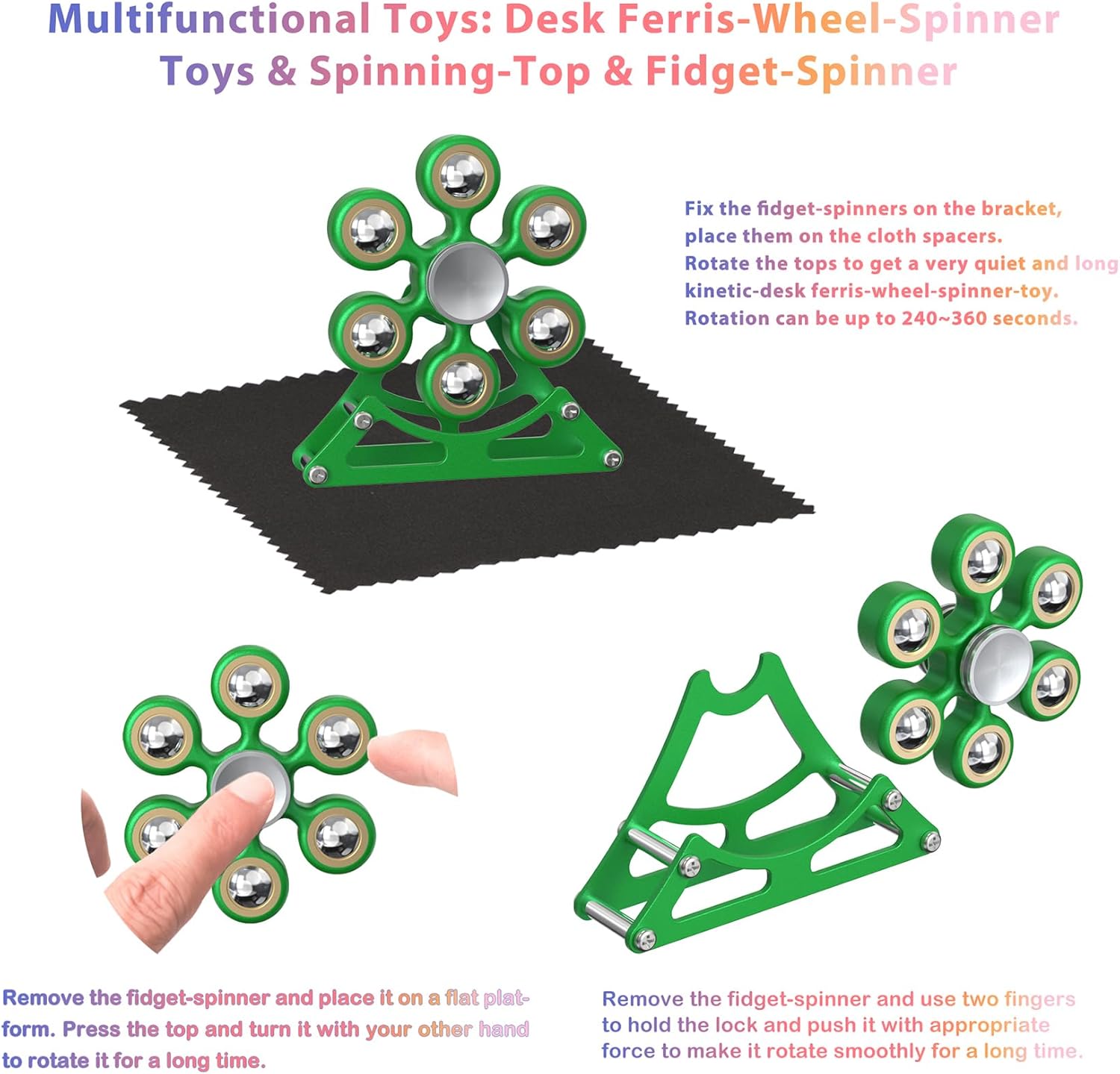 - Kinetic-Desk-ToysďźBuilt-in high-quality bearing, Can easily rotate for 4~6 minutes. Cloth pad: Cleans the toy and can also be placed at the bottom of the toy to ensure it is quiet.