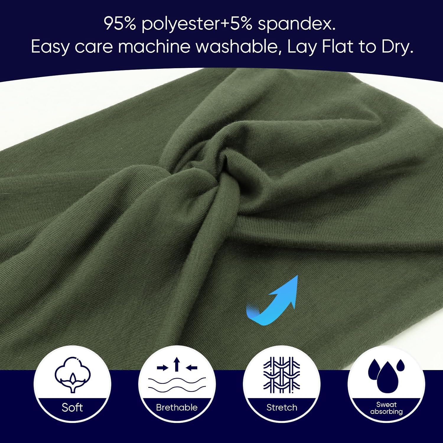 - Great Material - AQOKKA wide headbands for women are made of high-quality polyester and spandex. The fabric is breathable and soft with excellent sweat absorption to keep your forehead dry without bringing a stuffy feeling, which can keep your forehead dry and cool without bringing a stuffy feeling. These headbands have excellent support, you can wear them all day without pain.