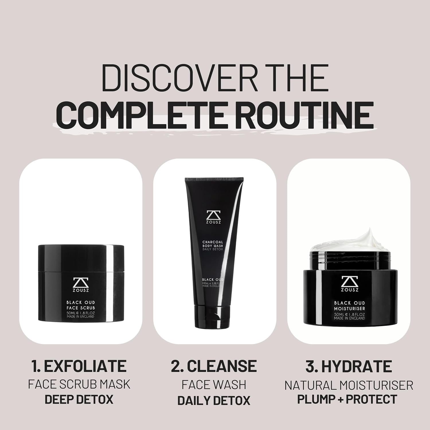 ZOUSZ Black Oud Charcoal Face Wash for Men – Daily Detox Activated Charcoal Face Cleanser – Premium Mens Skincare – Refreshing Face Wash Gift for Men, 100ml