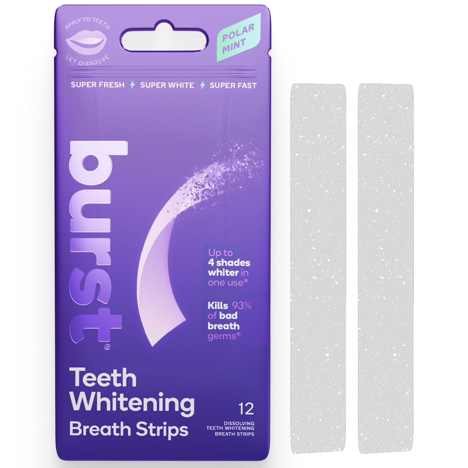 - ๐ฅ๐๐ฉ๐ข๐๐จ๐ง๐๐ข๐ก๐๐ฅ๐ฌ, ๐๐จ๐๐-๐ฃ๐จ๐ฅ๐ฃ๐ข๐ฆ๐ ๐ฆ๐ข๐๐จ๐ง๐๐ข๐ก: BURSTโs Teeth Whitening Breath Strips are the first two-in-one solution, combining instant breath freshness and visible teeth whitening in an easy-to-use, quick-dissolving strip.