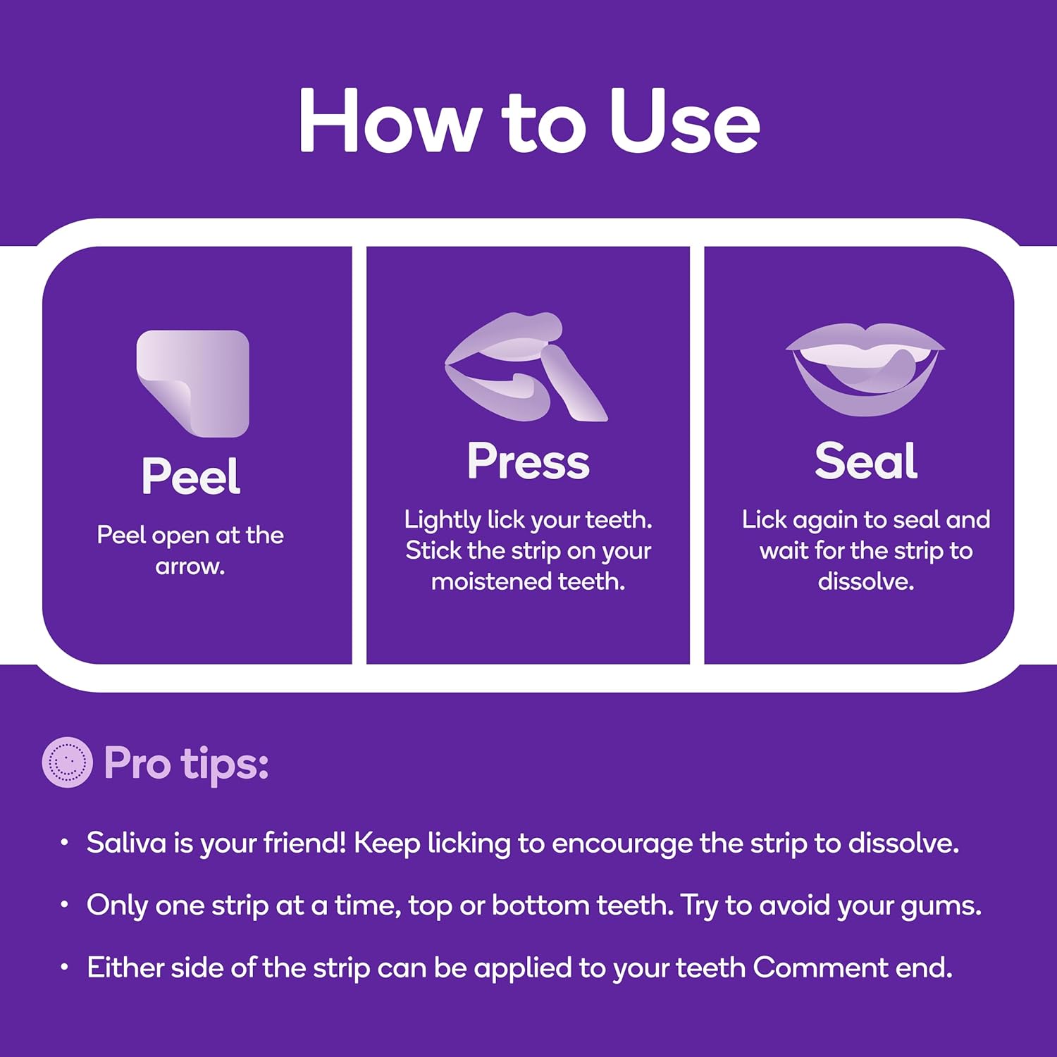 - ๐ ๐๐ฆ๐ฆ-๐๐ฅ๐๐ / ๐ค๐จ๐๐๐ & ๐๐๐ฆ๐ฌ ๐ง๐ข ๐จ๐ฆ๐: Coffee on the go? Wine at happy hour? Simply apply a strip to your teeth (top or bottom), and let it dissolve to freshen your breath and remove surface stains.