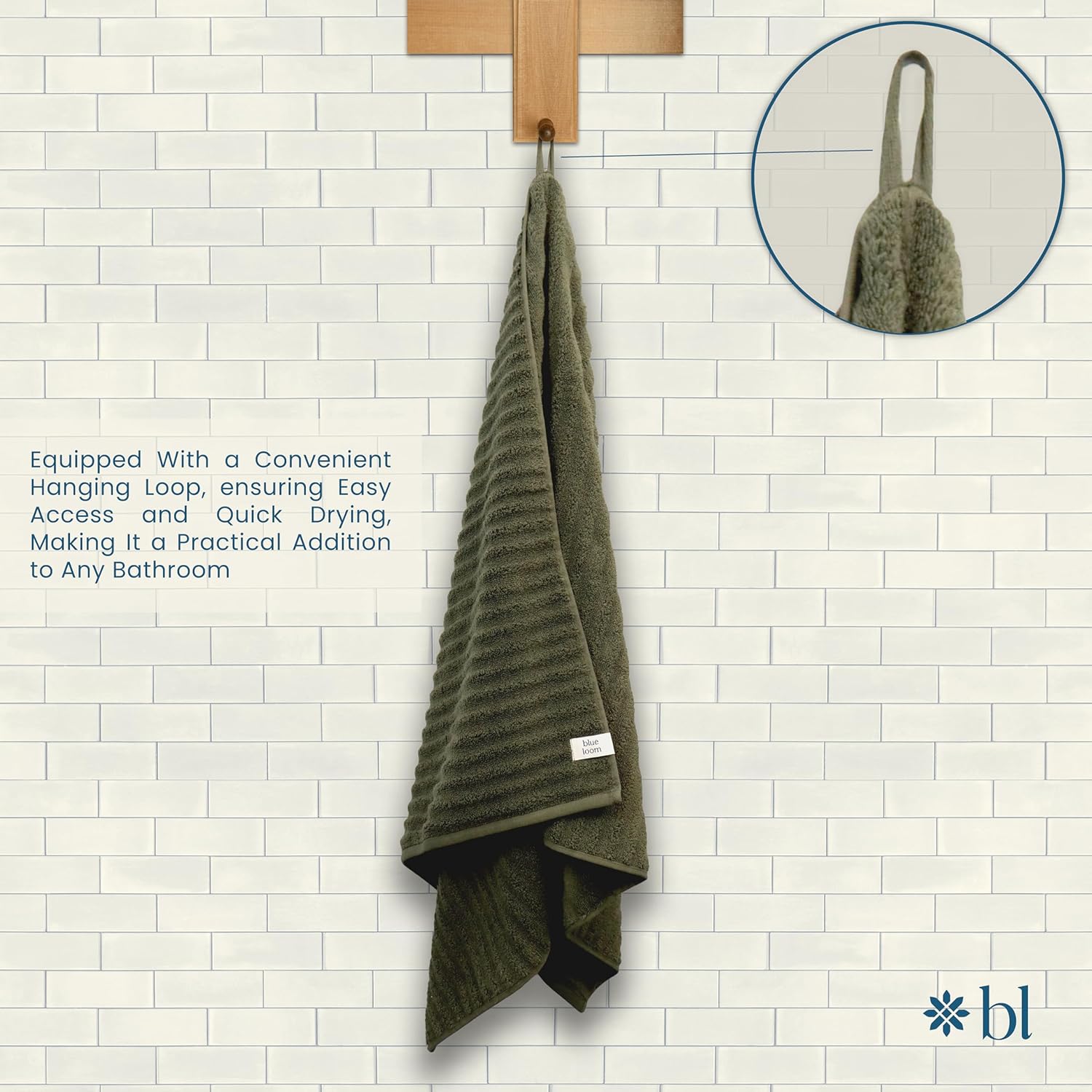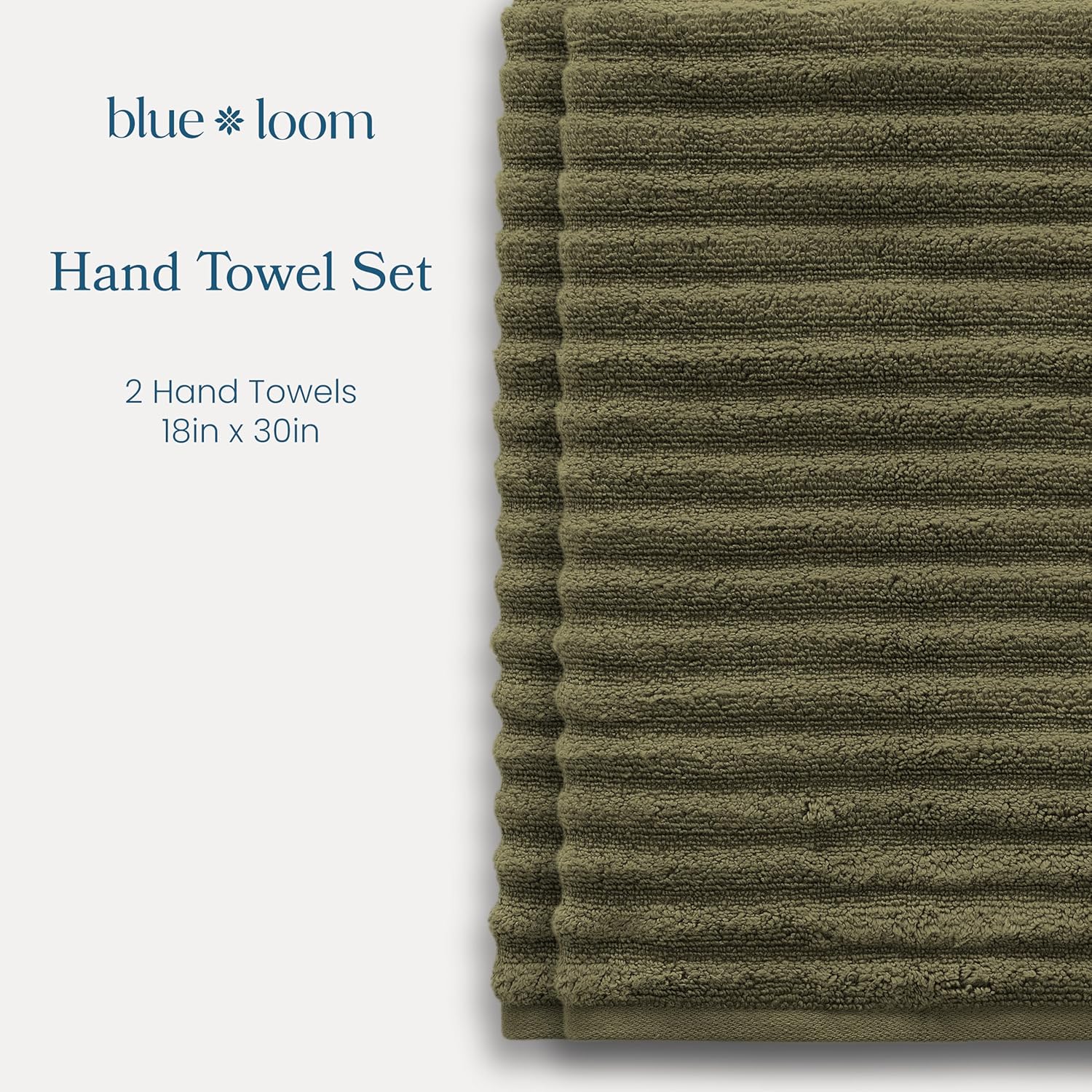 Blue Loom Ribbed Hand 2 Towels Set, 100% Cotton 600GSM, Soft Absorbent Durable Quick Drying for Bathroom - Mason 2 Piece 18" x 30" - Moss