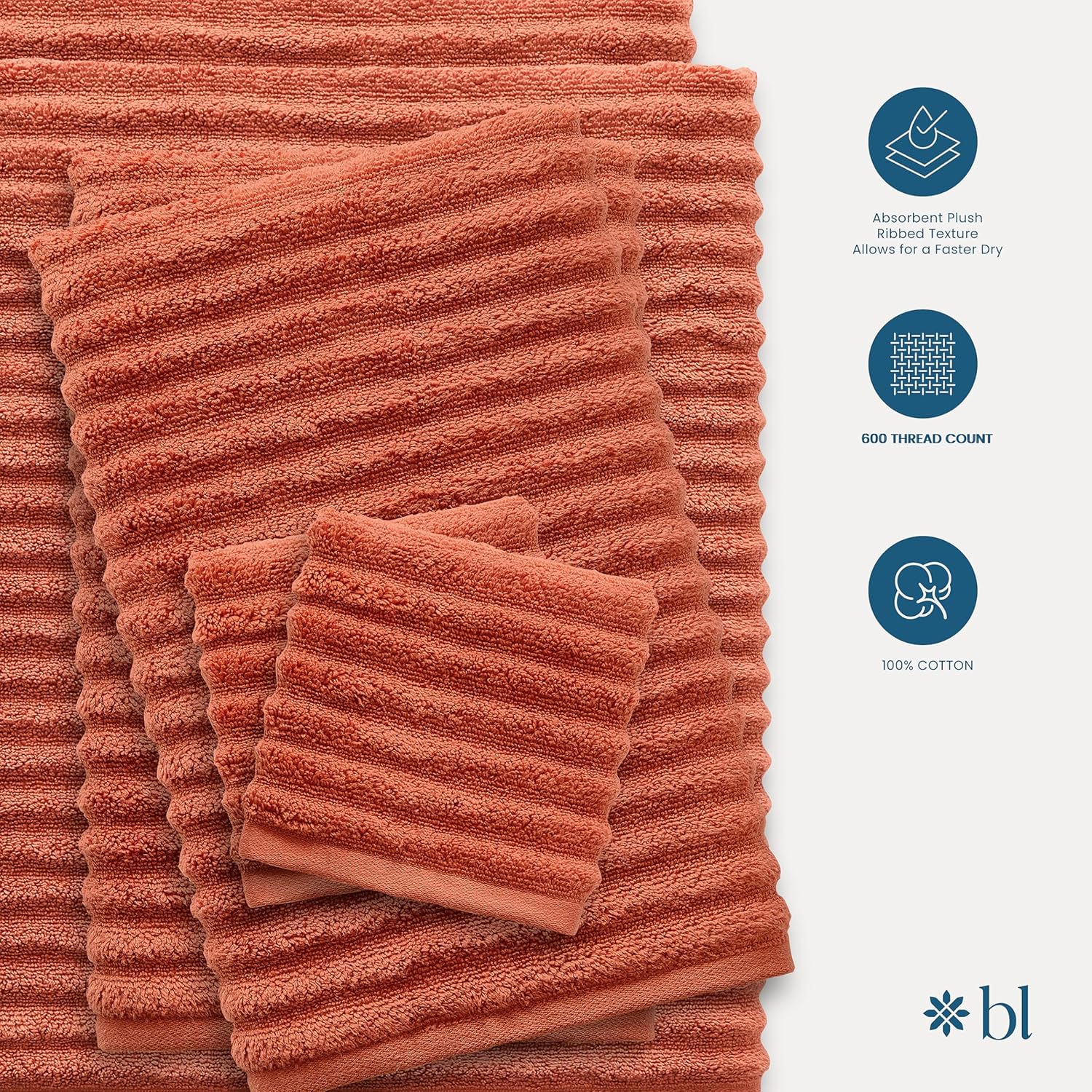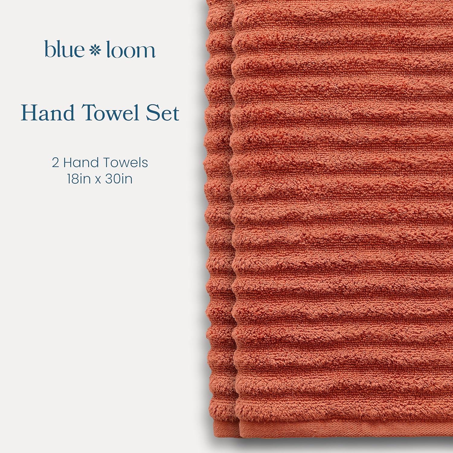 Blue Loom Ribbed Hand 2 Towels Set, 100% Cotton 600GSM, Soft Absorbent Durable Quick Drying for Bathroom - Mason 2 Piece 18" x 30" - Terracotta