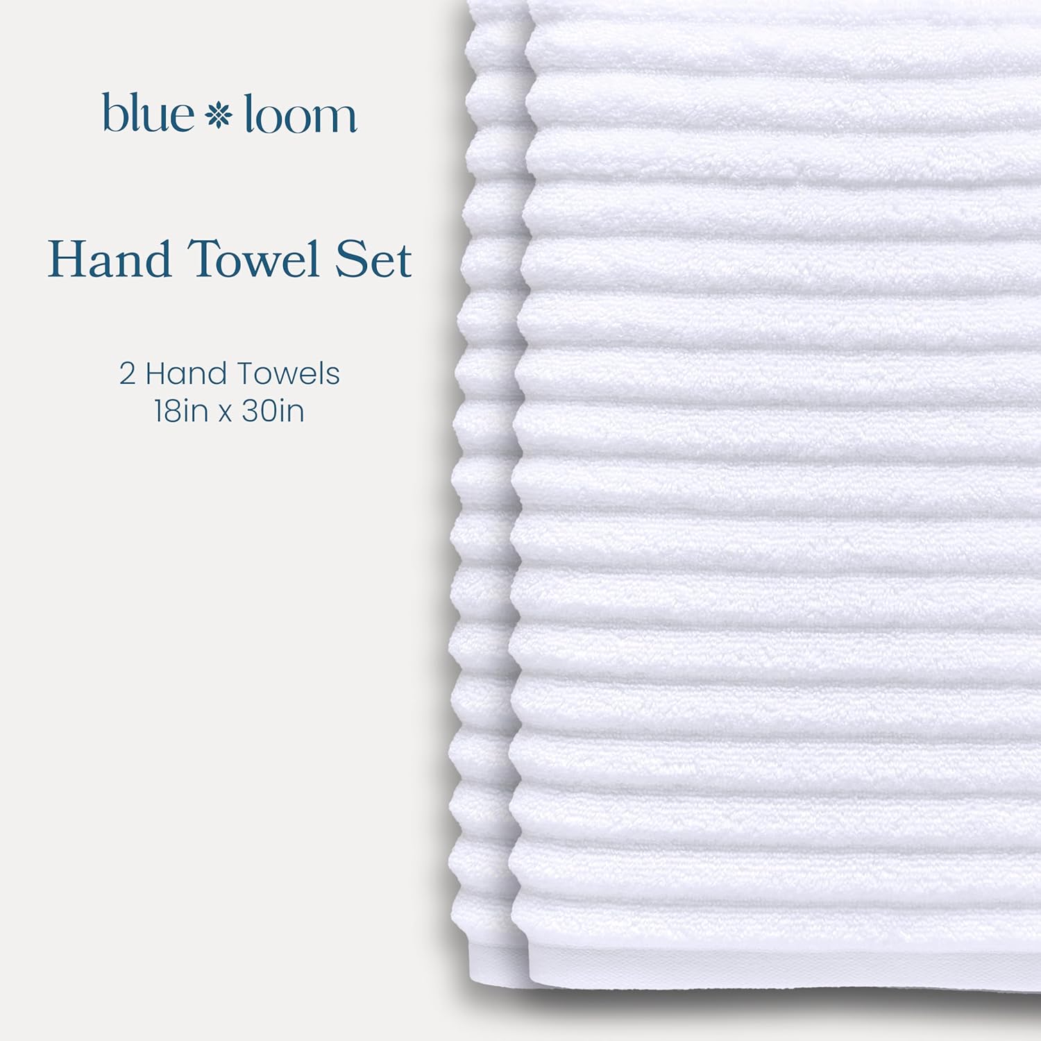 Blue Loom Ribbed Hand 2 Towels Set, 100% Cotton 600GSM, Soft Absorbent Durable Quick Drying for Bathroom - Mason 2 Piece 18" x 30" - White