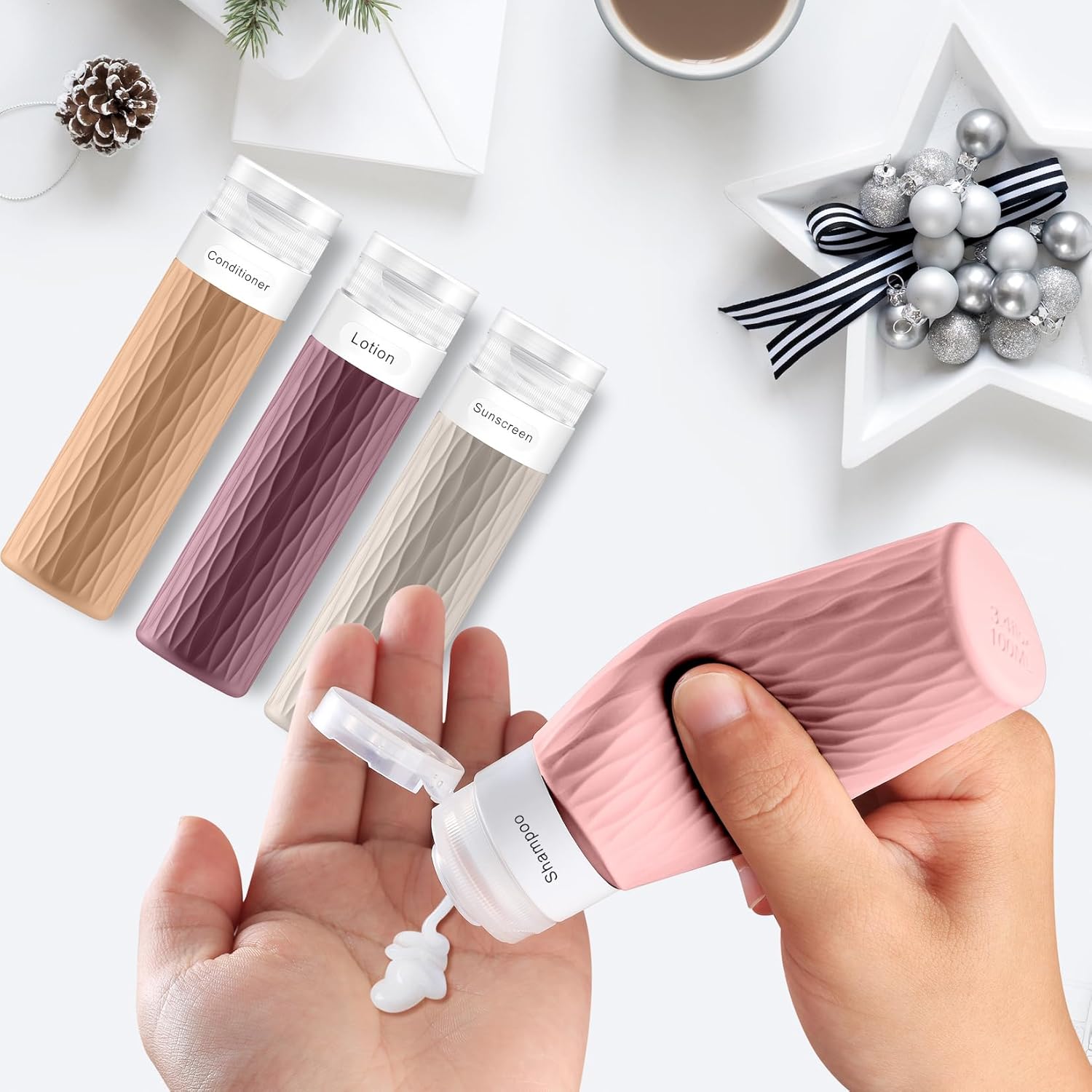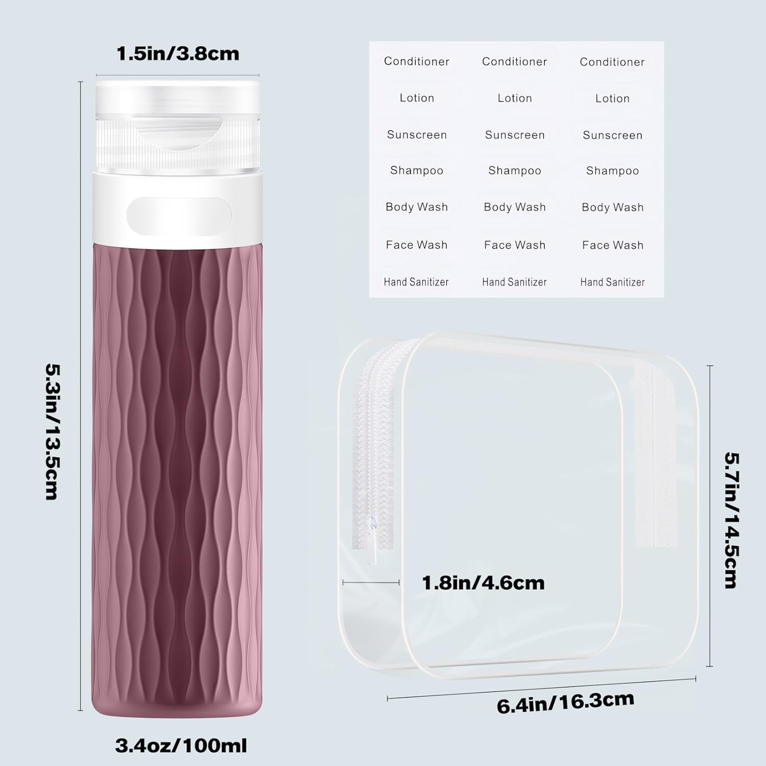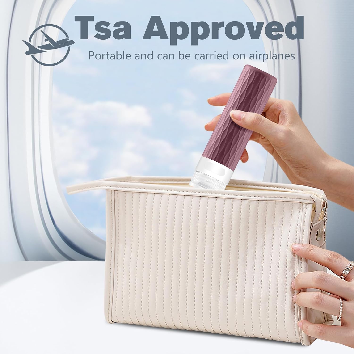 - TSA approval: 4 pack 3.4 oz travel bottles for toiletries are TSA approved that allows for unobstructed boarding. The tsa approved travel bottles are great for shampoo, conditioner, shower gel, lotion, hand sanitizer and ect. Additionally, the travel kit comes with a zippered clear transparent toiletry bag, which saves space, easy storage, and transportation. The travel size bottles are must have traveling accessories