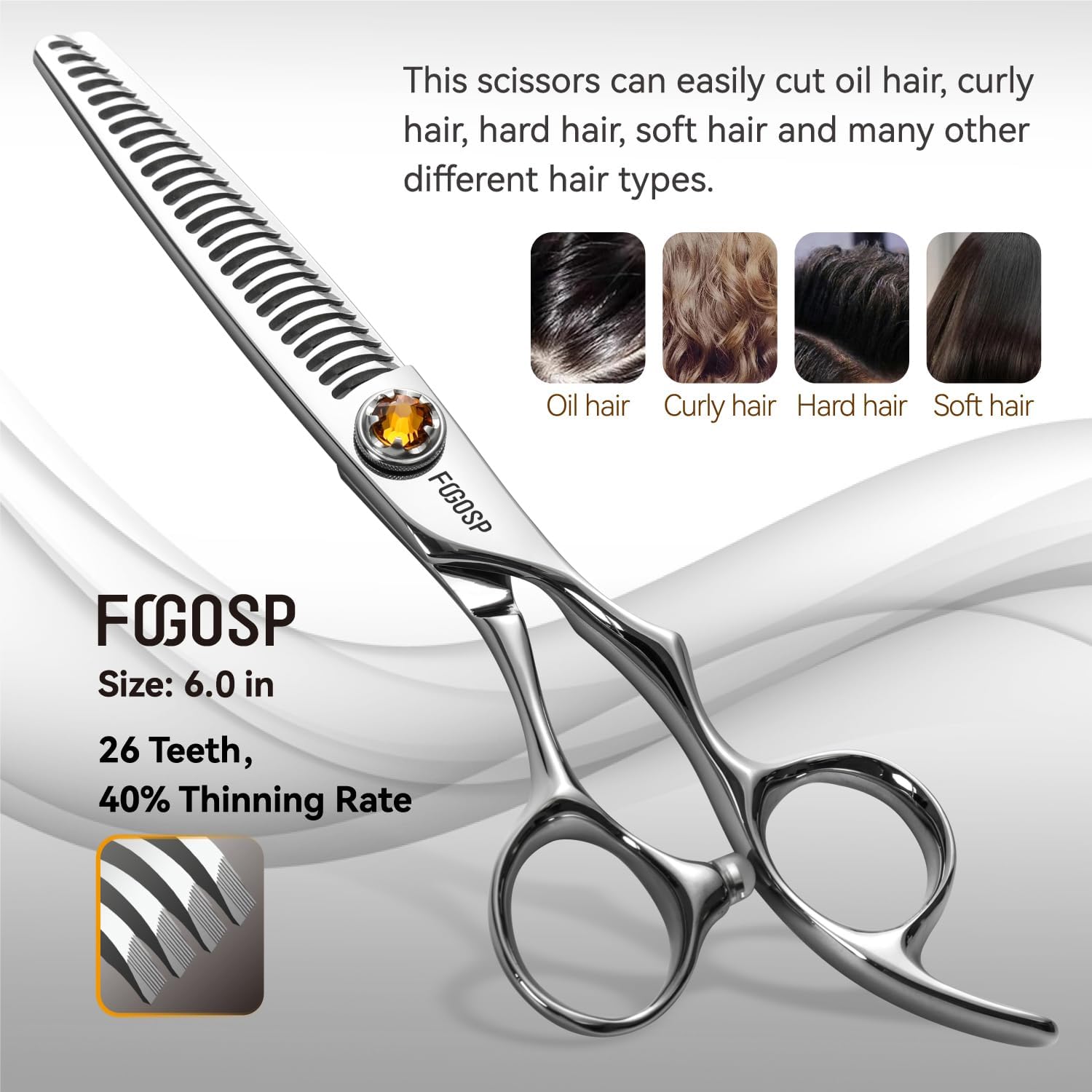 - Ultra-Gentle Cutting Feel: FOGOSP high-end barber scissors, the opening and closing resistance is very low, hand cutting hair light, soft and smooth, extremely sharp, easy cutting. High-quality scissors, so that you love to enjoy every moment of life.