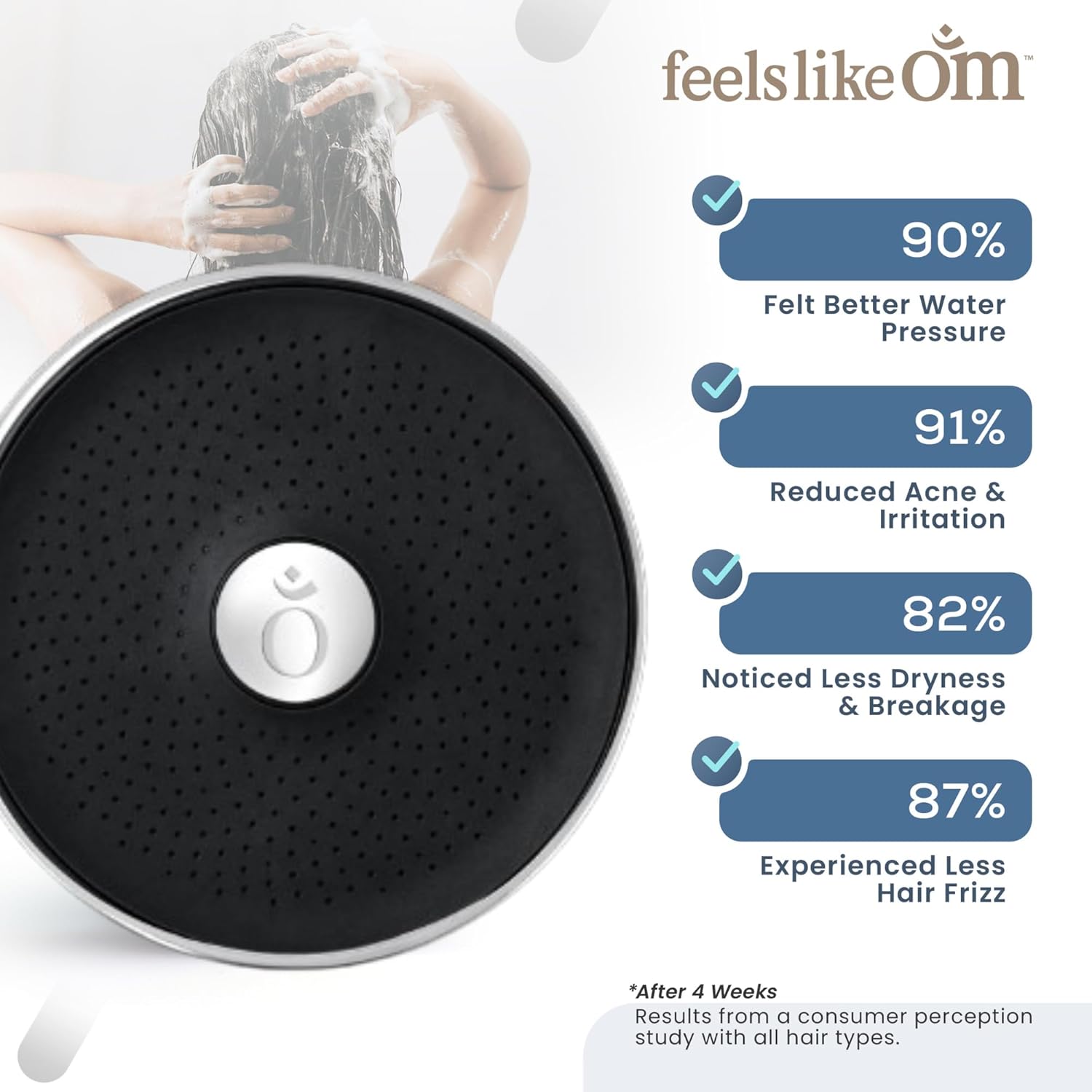 - TRANSFORMATIVE HAIR & SKIN BENEFITS: Watch your hair and skin thrive with our showerhead filter for hard water! The Feels Like Om shower head with filter removes harsh minerals that cause dry, brittle hair and irritated skin. Users love their softer, more manageable hair, clearer skin, and reduced irritation. Our filtered shower head's multi-stage system helps restore natural pH balance for healthier hair and skin.