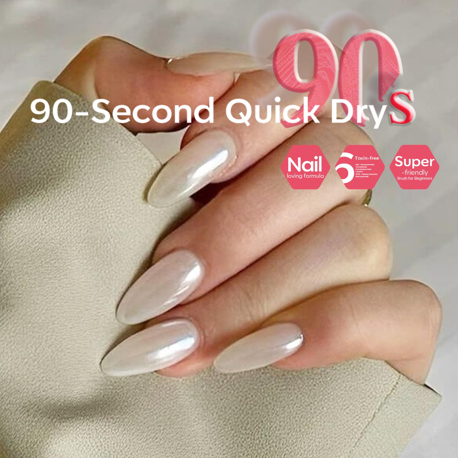 - Chromatic Allure: modelones White Shell Nail Polish is a soft, pearlescent white with a delicate shimmer. Its subtle, luminous glow evokes the elegance of a seashell kissed by the sun—refined yet striking. Ideal for any occasion, this pearl white polish delivers a fresh, polished finish, creating an effortlessly chic look