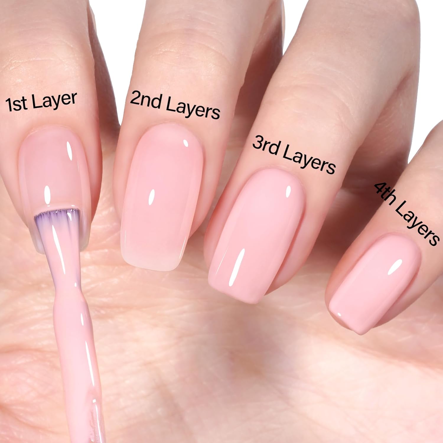- Jelly Feeling Nude Gel Nail Polish: AILLSA pink gel polish has a semi-transparent color, you can adjust the depth of the color according to your preference, the more layers you apply the deeper the color becomes and goes from sheer to opaque. *The color of the gel nail polish will also vary slightly depending on the of the nail bed color.