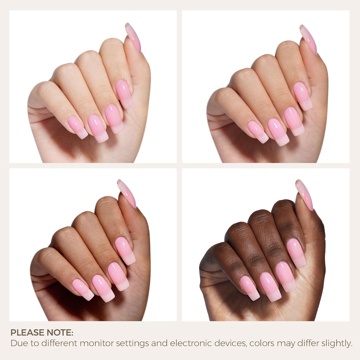 - Jelly Feeling Nude Gel Nail Polish: AILLSA pink gel polish has a semi-transparent color, you can adjust the depth of the color according to your preference, the more layers you apply the deeper the color becomes and goes from sheer to opaque. *The color of the gel nail polish will also vary slightly depending on the of the nail bed color.