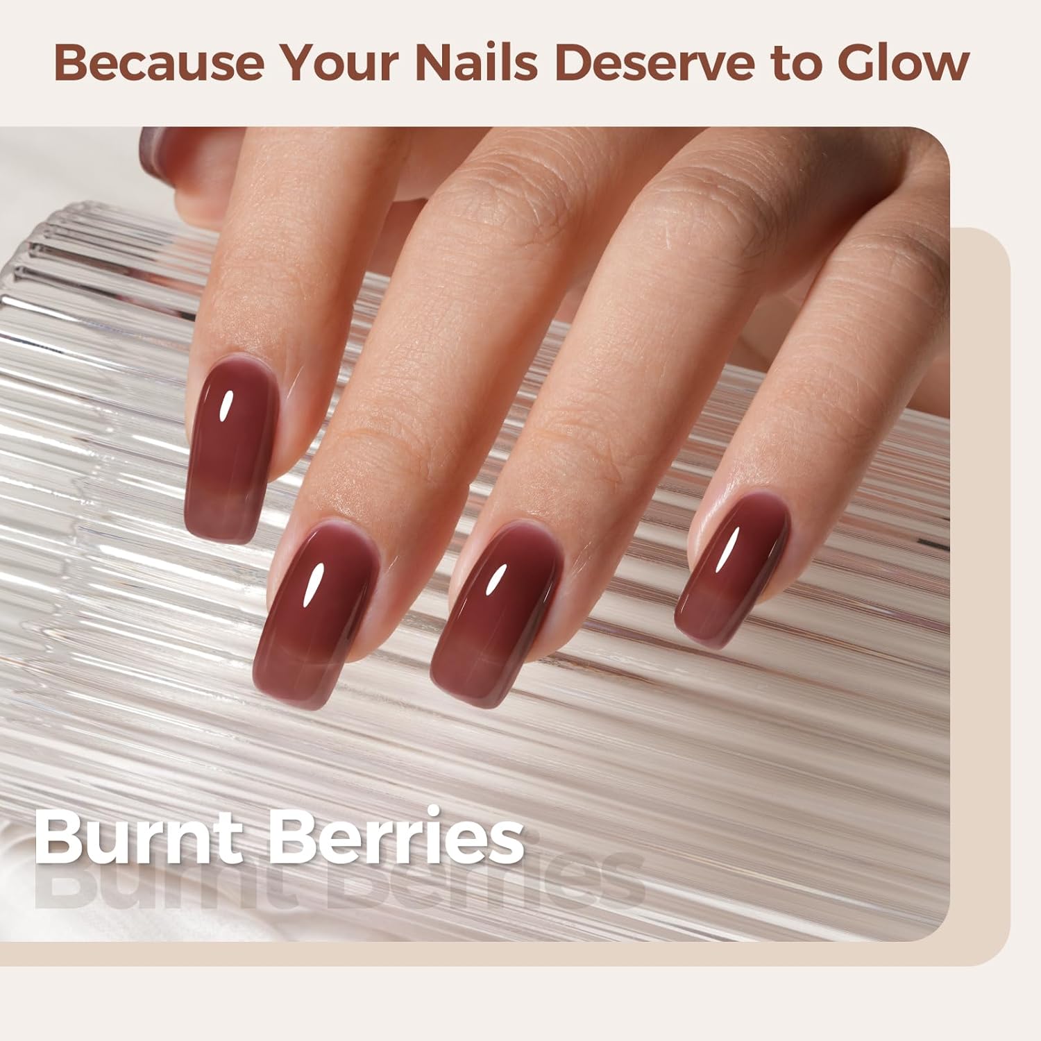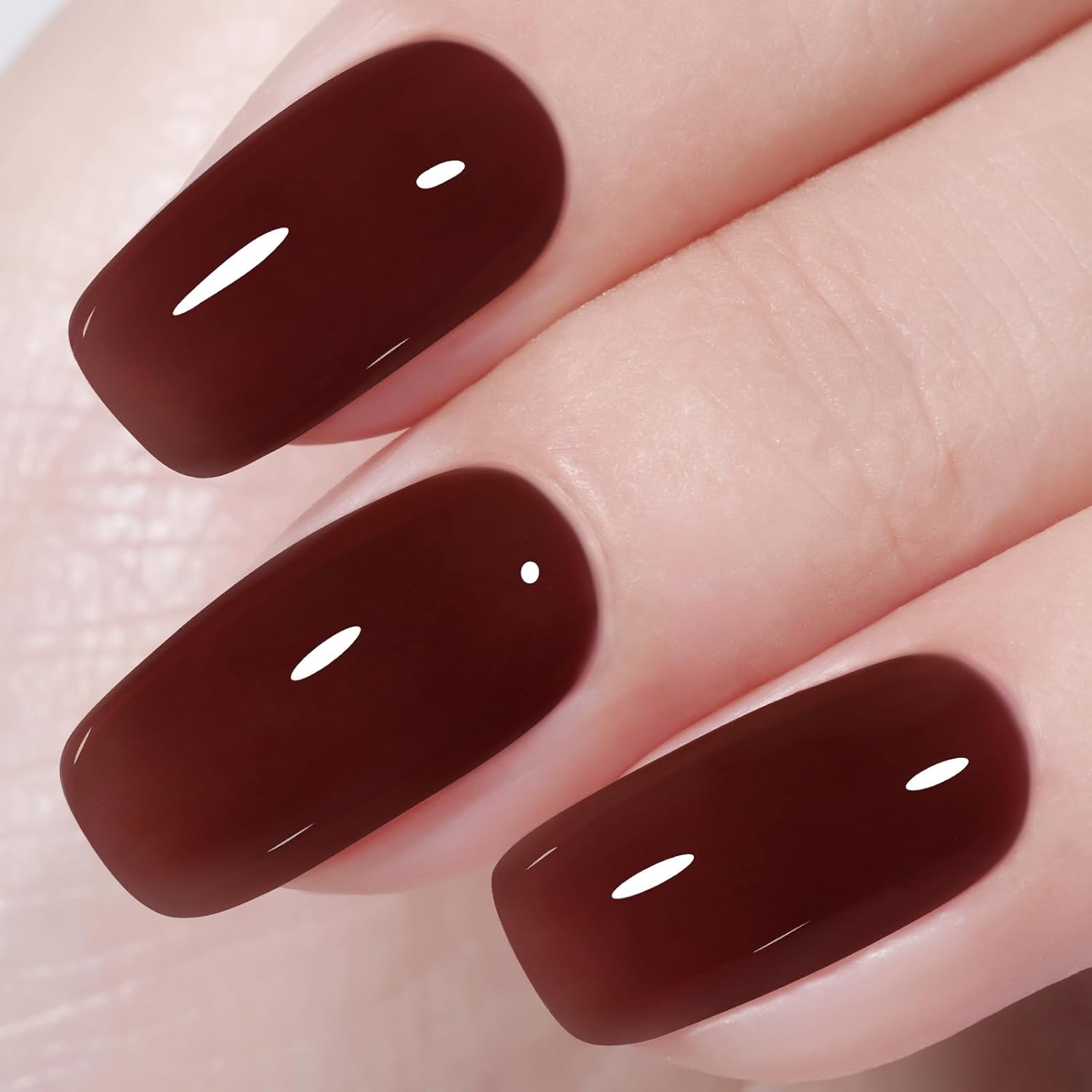 AILLSA Winter Brown Gel Nail Polish Burnt Berries Jelly Gel Polish Fall Neutral Translucent Gel Polish Long Lasting Purple Chestnut Color Soak Off U V Gel for French Manicure Nail Art at Home 0.51 Oz