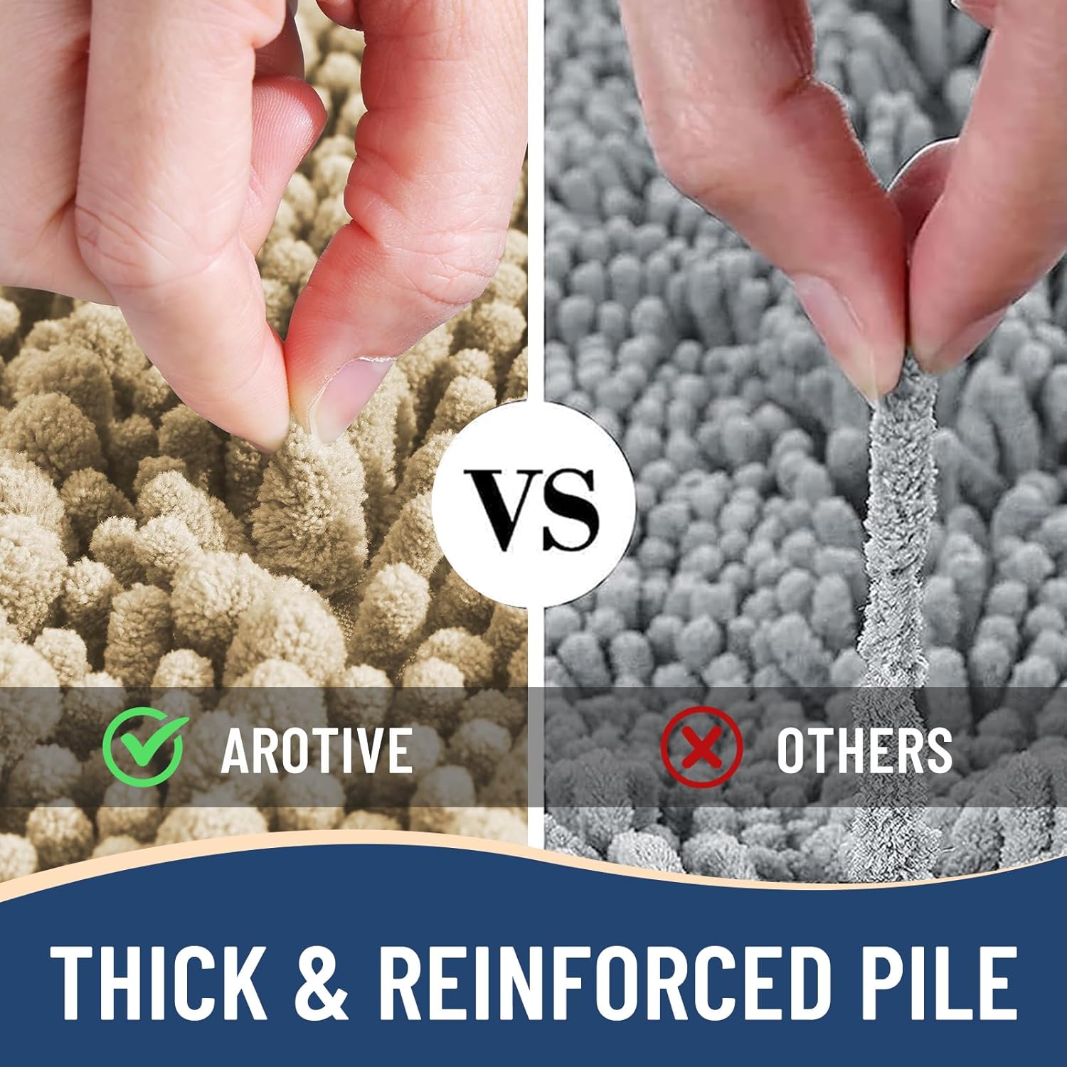 Arotive Luxury Chenille Bathroom Rug Mat, Extra Soft Thick Absorbent Shaggy Bath Rugs, Non-Slip Machine Wash Dry, Plush Bath Mats for Bathroom, Shower and Tub, 50x30, Beige
