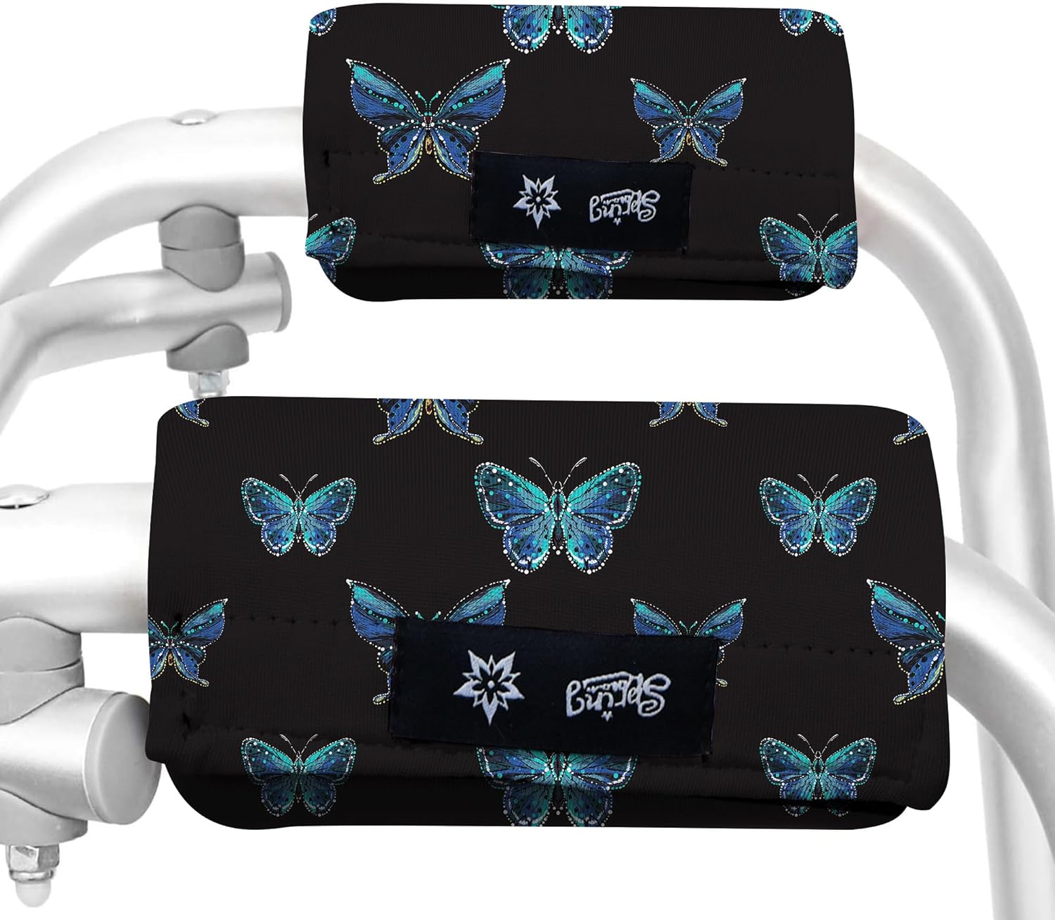 Universal Walker Hand Grip Padded Covers Non-Slip Cushion Foam for Folding Wheelchair Rollator Crutch Handle Pads 2-Pack Blue Butterfly