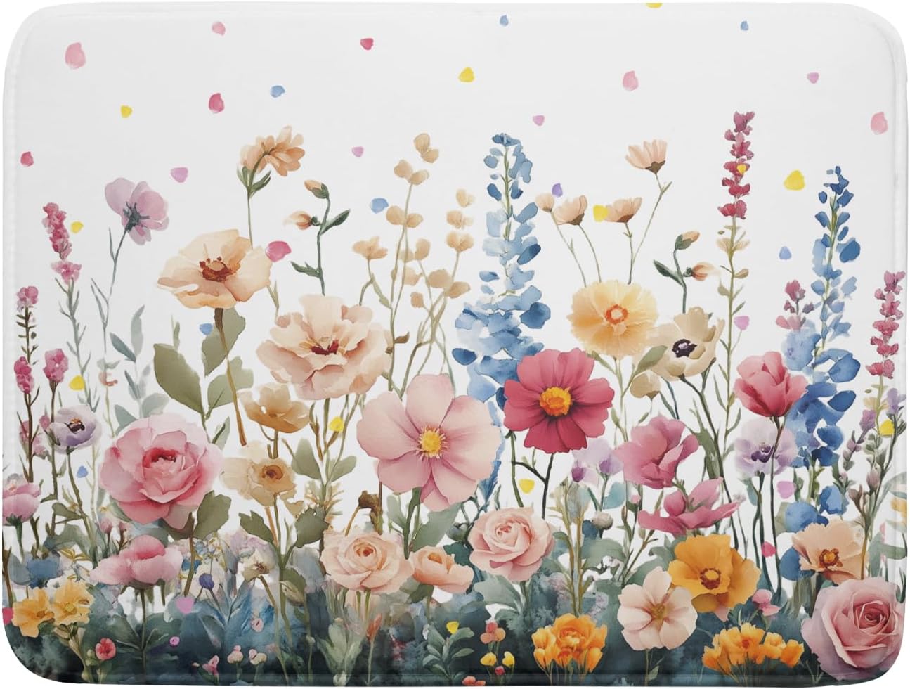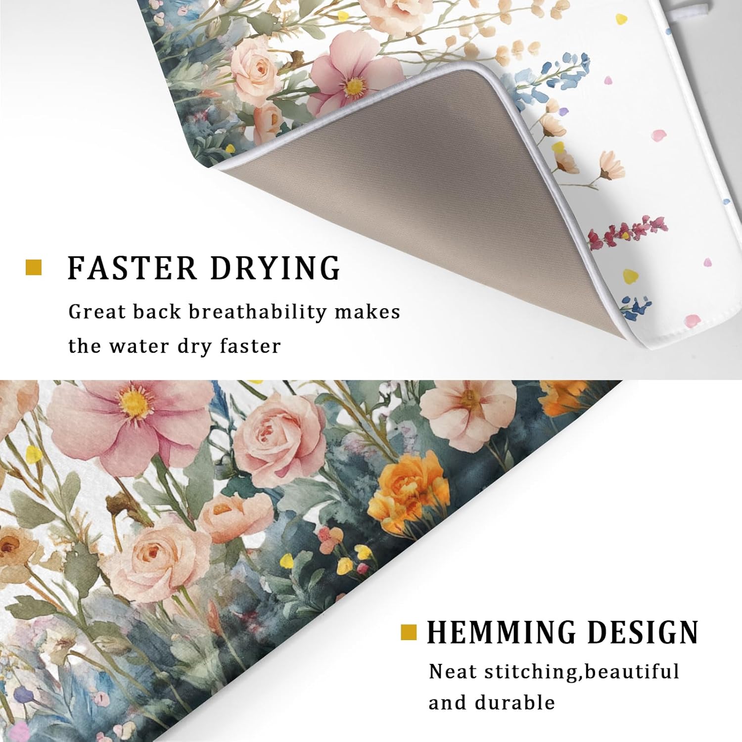 Colorful Flower Dish Drying Mat 18x24 Inch Botanical Floral Drainer Rack Mats Washable Absorbent Dish Dry Pad for Kitchen Counter Sink